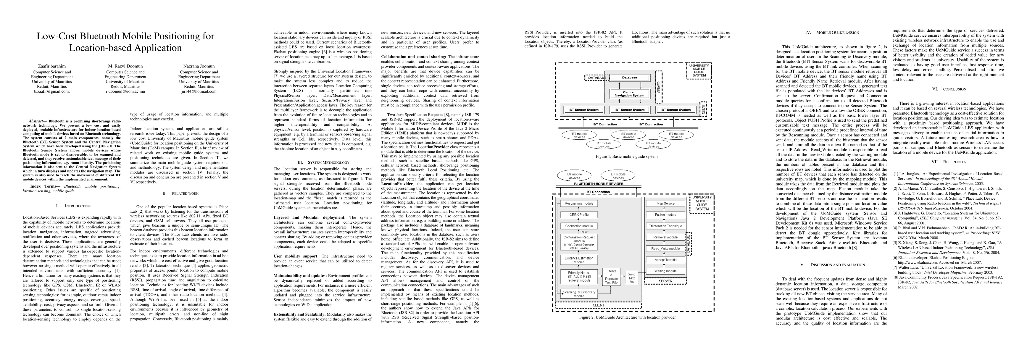 This research introduces a low-cost, scalable Bluetooth-based system for indoor mobile positioning. It comprises a Bluetooth Sensor System for detecting mobile devices and a Central Navigation System for displaying and updating navigation maps, facilitating location-based applications.