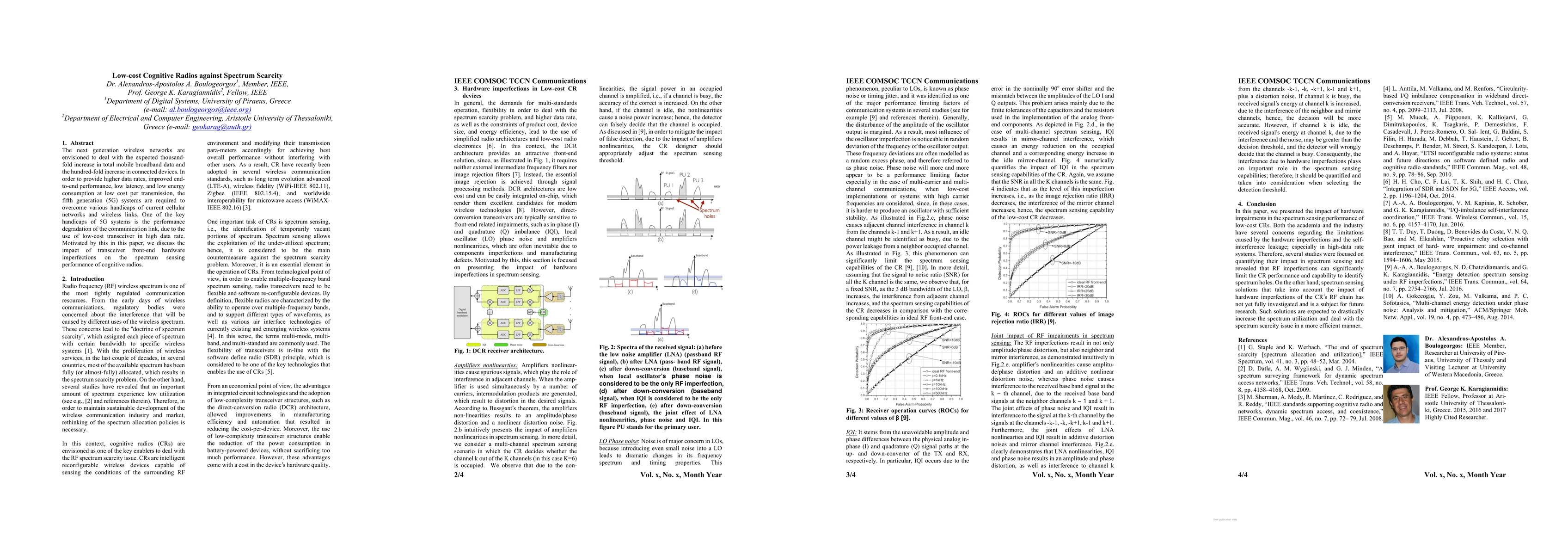 This paper investigates how low-cost transceiver front-end hardware imperfections affect the spectrum sensing performance in cognitive radios, aiming to address spectrum scarcity and improve the efficiency of next-generation wireless networks. The study highlights the challenges and potential solutions for 5G systems to achieve higher data rates and lower costs.