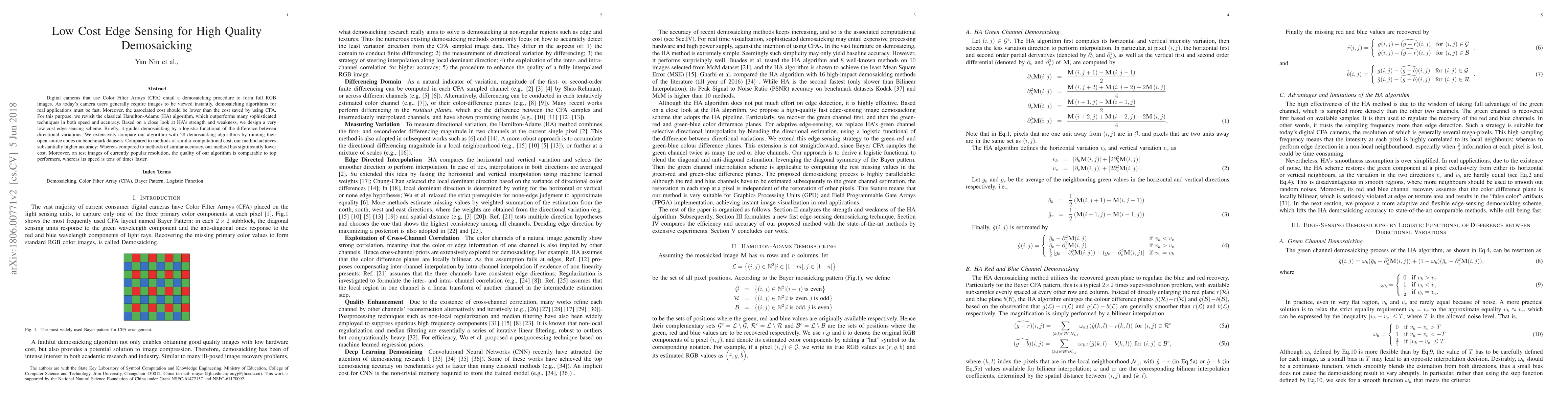 Researchers developed a low-cost edge sensing scheme for high-quality demosaicking in digital cameras, achieving comparable image quality to top performers while significantly reducing computational cost.