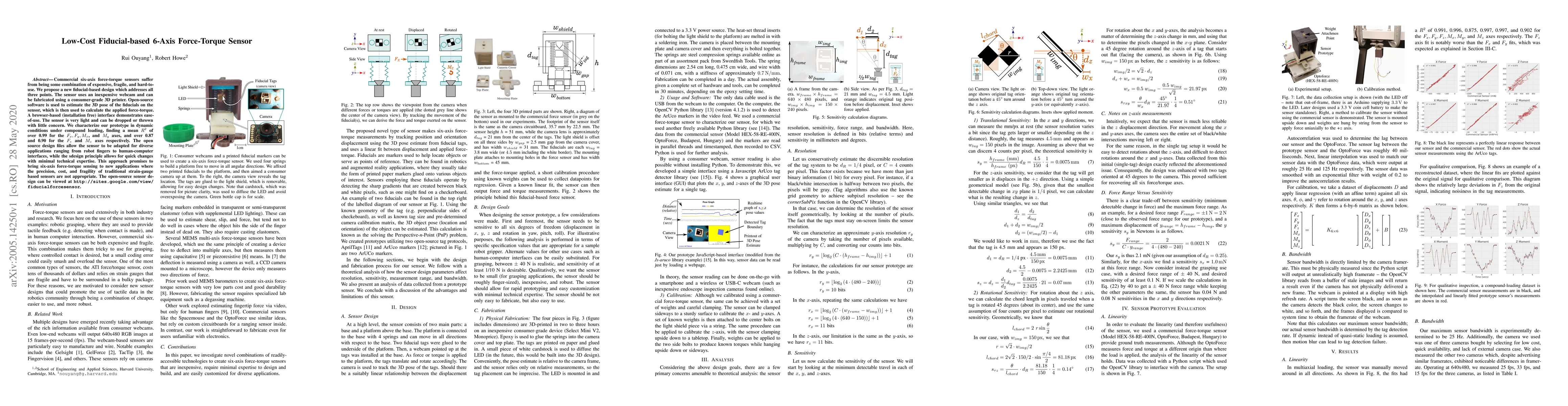 The research proposes a low-cost 6-axis force-torque sensor using fiducial markers and a webcam, fabricated with a 3D printer and consumer-grade components, with open-source software for pose estimation and a browser-based interface for ease of use.