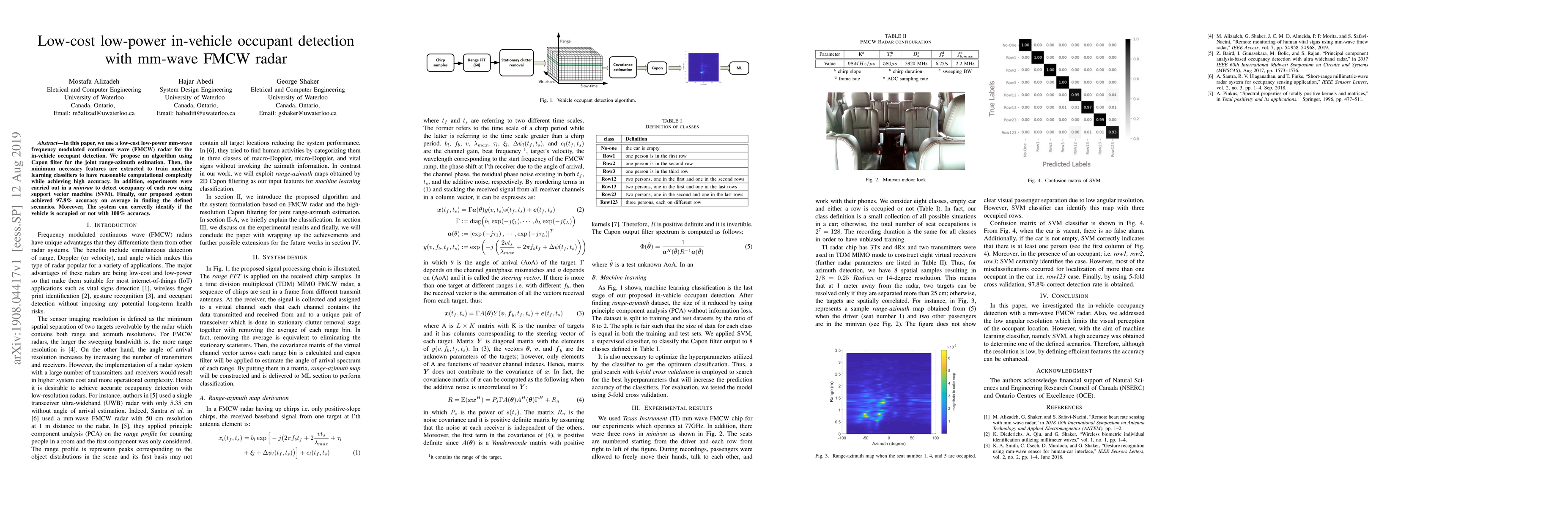 Researchers developed a low-cost, low-power mm-wave radar system for accurate in-vehicle occupant detection with 97.8% average accuracy, achieving 100% accuracy in identifying occupied or unoccupied vehicles.