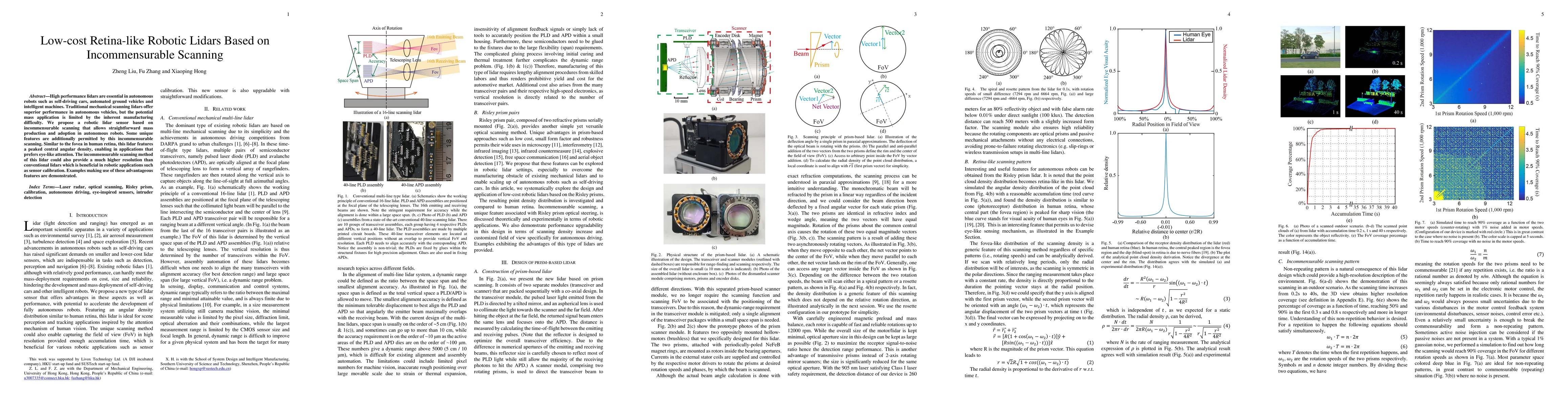 High performance lidars are essential in autonomous robots such as self-driving cars, automated ground vehicles and intelligent machines. Traditional mechanical scanning lidars offer superior performance in autonomous vehicles, but the potential mass application is limited by the inherent manufacturing difficulty. We propose a robotic lidar sensor based on incommensurable scanning that allows straightforward mass production and adoption in autonomous robots. Some unique features are additionally permitted by this incommensurable scanning. Similar to the fovea in human retina, this lidar features a peaked central angular density, enabling in applications that prefers eye-like attention. The incommensurable scanning method of this lidar could also provide a much higher resolution than conventional lidars which is beneficial in robotic applications such as sensor calibration. Examples making use of these advantageous features are demonstrated.