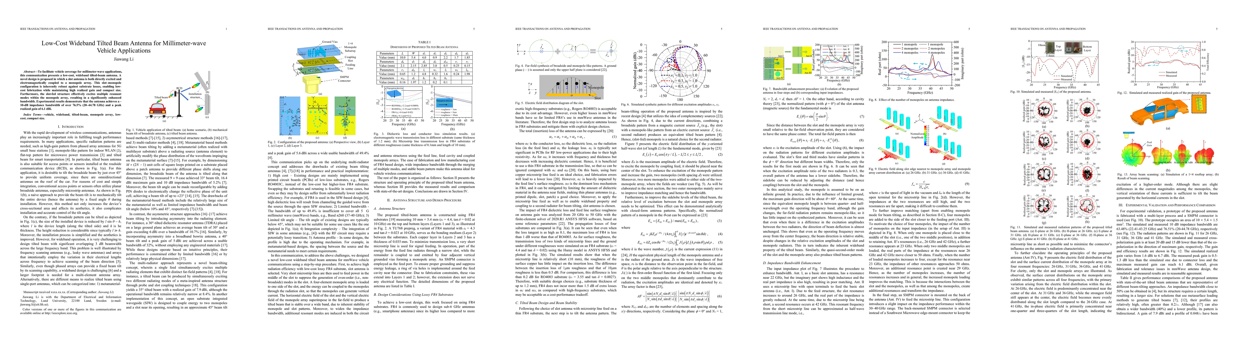 Researchers developed a low-cost, wideband antenna for millimeter-wave vehicle applications with a slot-monopole configuration that achieves high realized gain and compact size.