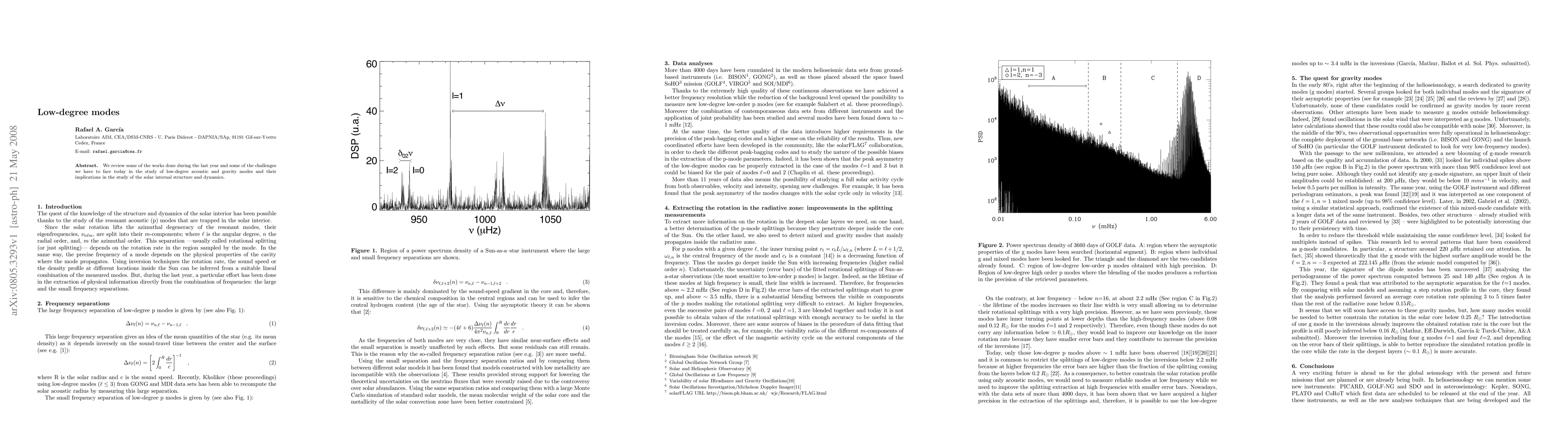 The quest of the knowledge of the structure and dynamics of the solar interior has been possible thanks to the study of the resonant acoustic (p) modes that are trapped in the solar interior. Since the solar rotation lifts the azimuthal degeneracy of the resonant modes, their eigenfrequencies are split into their m-components; where l is the angular degree, n the radial order, and, m the azimuthal order. This separation --usually called rotational splitting (or just splitting)-- depends on the rotation rate in the region sampled by the mode. In the same way, the precise frequency of a mode depends on the physical properties of the cavity where the mode propagates. Using inversion techniques the rotation rate, the sound speed or the density profile at different locations inside the Sun can be inferred from a suitable lineal combination of the measured modes. But, during the last year, a particular effort has been done in the extraction of physical information directly from the combination of frequencies: the large and the small frequency separations.