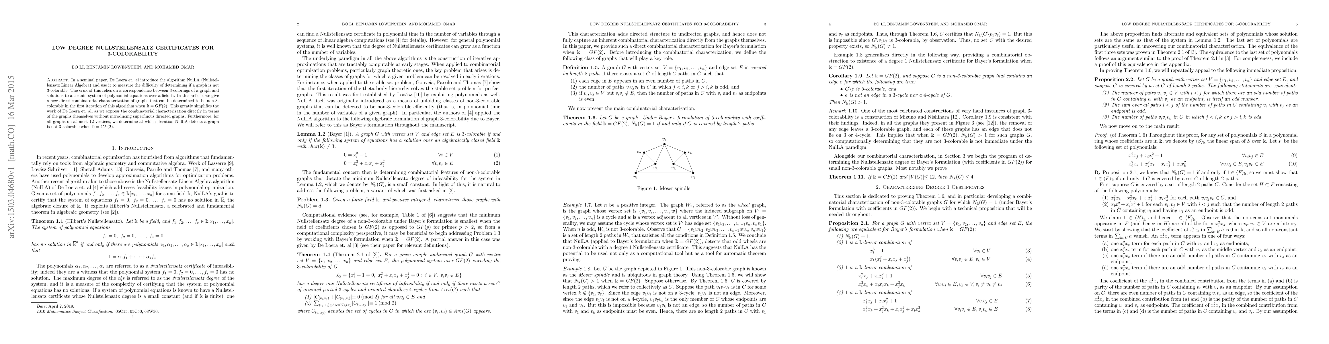 In a seminal paper, De Loera et. al introduce the algorithm NulLA (Nullstellensatz Linear Algebra) and use it to measure the difficulty of determining if a graph is not 3-colorable. The crux of this relies on a correspondence between 3-colorings of a graph and solutions to a certain system of polynomial equations over a field $\mathbb{k}$. In this article, we give a new direct combinatorial characterization of graphs that can be determined to be non-3-colorable in the first iteration of this algorithm when $\mathbb{k}=GF(2)$. This greatly simplifies the work of De Loera et. al, as we express the combinatorial characterization directly in terms of the graphs themselves without introducing superfluous directed graphs. Furthermore, for all graphs on at most $12$ vertices, we determine at which iteration NulLA detects a graph is not 3-colorable when $\mathbb{k}=GF(2)$.