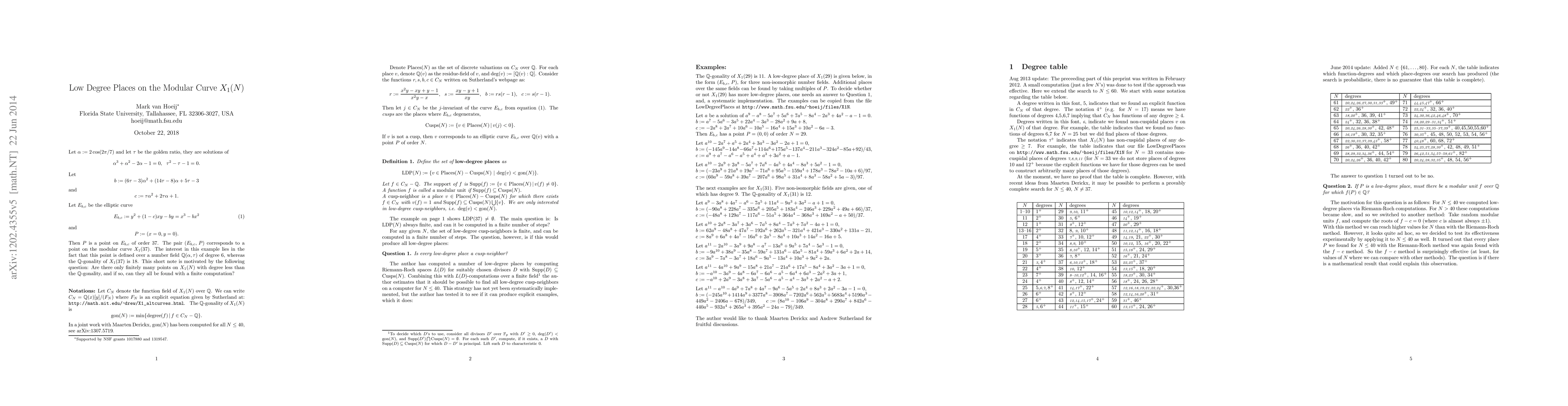 Summary: This paper explores points on the modular curve X1(N) with degrees lower than the gonality, providing examples and posing questions regarding their properties over number fields. The study aims to deepen the understanding of these low degree points on modular curves.