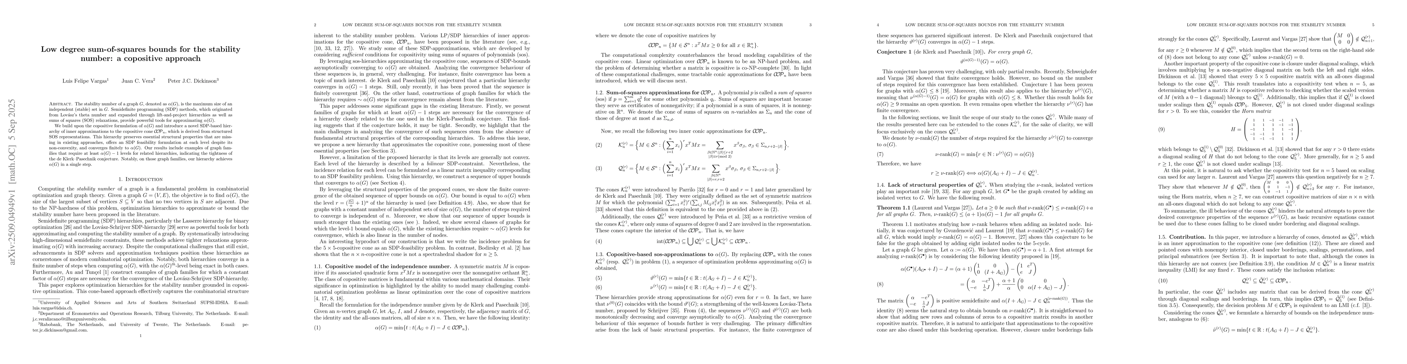The stability number of a graph $G$, denoted as $\alpha(G)$, is the maximum size of an independent (stable) set in $G$. Semidefinite programming (SDP) methods, which originated from Lov\'asz's theta number and expanded through lift-and-project hierarchies as well as sums of squares (SOS) relaxations, provide powerful tools for approximating $\alpha(G)$. We build upon the copositive formulation of $\alpha(G)$ and introduce a novel SDP-based hierarchy of inner approximations to the copositive cone COP$_n$, which is derived from structured SOS representations. This hierarchy preserves essential structural properties that are missing in existing approaches, offers an SDP feasibility formulation at each level despite its non-convexity, and converges finitely to $\alpha(G)$. Our results include examples of graph families that require at least $\alpha(G) - 1$ levels for related hierarchies, indicating the tightness of the de Klerk-Pasechnik conjecture. Notably, on those graph families, our hierarchy achieves $\alpha(G)$ in a single step.
