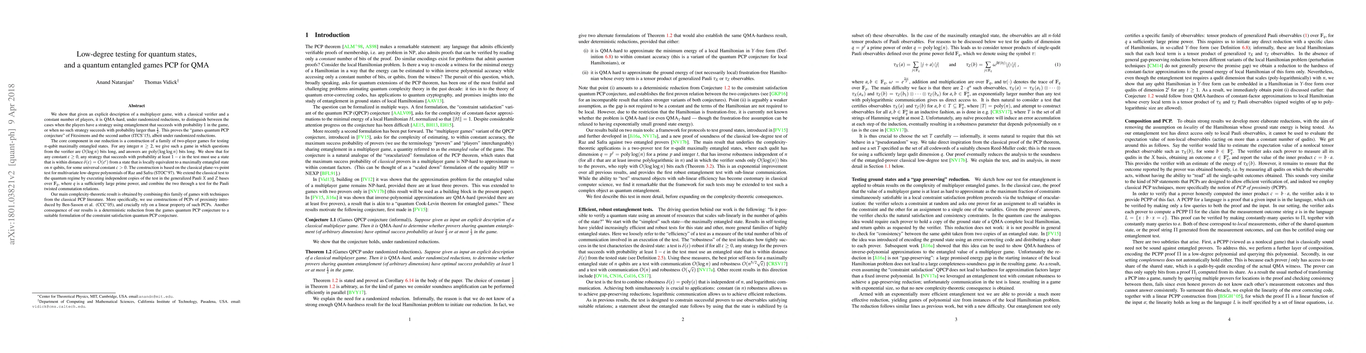 The paper presents a proof of the 'games quantum PCP conjecture', demonstrating that distinguishing between winning strategies using entanglement versus those without in constant-round quantum multiplayer games is QMA-hard. This is achieved via a family of two-player games to test maximally entangled states, extending classical low-degree testing methods to the quantum domain. The research also establishes a deterministic reduction from the games quantum PCP conjecture to a Hamiltonian quantum PCP conjecture formulation.
