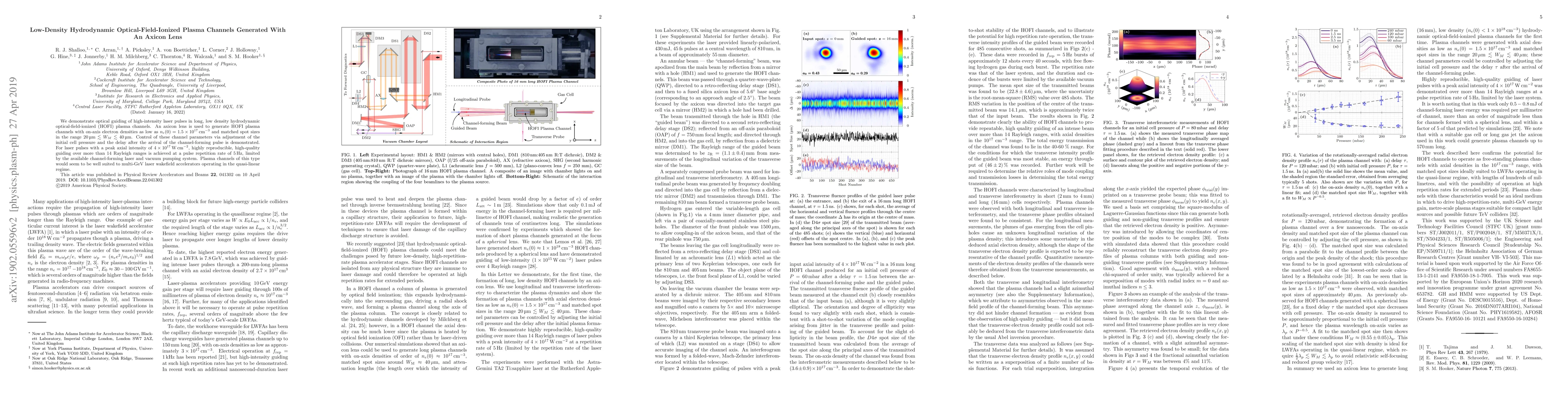The research utilized an axicon lens to generate long, low-density hydrodynamic optical-field-ionized (HOFI) plasma channels. These channels were characterized using longitudinal and transverse interferometry in short and long cells.