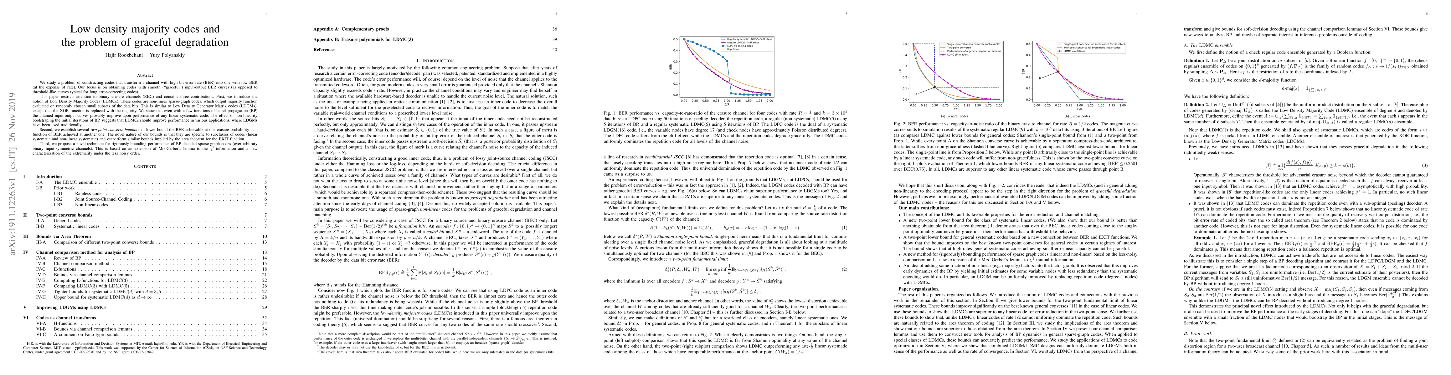 We study a problem of constructing codes that transform a channel with high bit error rate (BER) into one with low BER (at the expense of rate). Our focus is on obtaining codes with smooth ("graceful'') input-output BER curves (as opposed to threshold-like curves typical for long error-correcting codes). This paper restricts attention to binary erasure channels (BEC) and contains three contributions. First, we introduce the notion of Low Density Majority Codes (LDMCs). These codes are non-linear sparse-graph codes, which output majority function evaluated on randomly chosen small subsets of the data bits. This is similar to Low Density Generator Matrix codes (LDGMs), except that the XOR function is replaced with the majority. We show that even with a few iterations of belief propagation (BP) the attained input-output curves provably improve upon performance of any linear systematic code. The effect of non-linearity bootstraping the initial iterations of BP, suggests that LDMCs should improve performance in various applications, where LDGMs have been used traditionally. Second, we establish several \textit{two-point converse bounds} that lower bound the BER achievable at one erasure probability as a function of BER achieved at another one. The novel nature of our bounds is that they are specific to subclasses of codes (linear systematic and non-linear systematic) and outperform similar bounds implied by the area theorem for the EXIT function.
