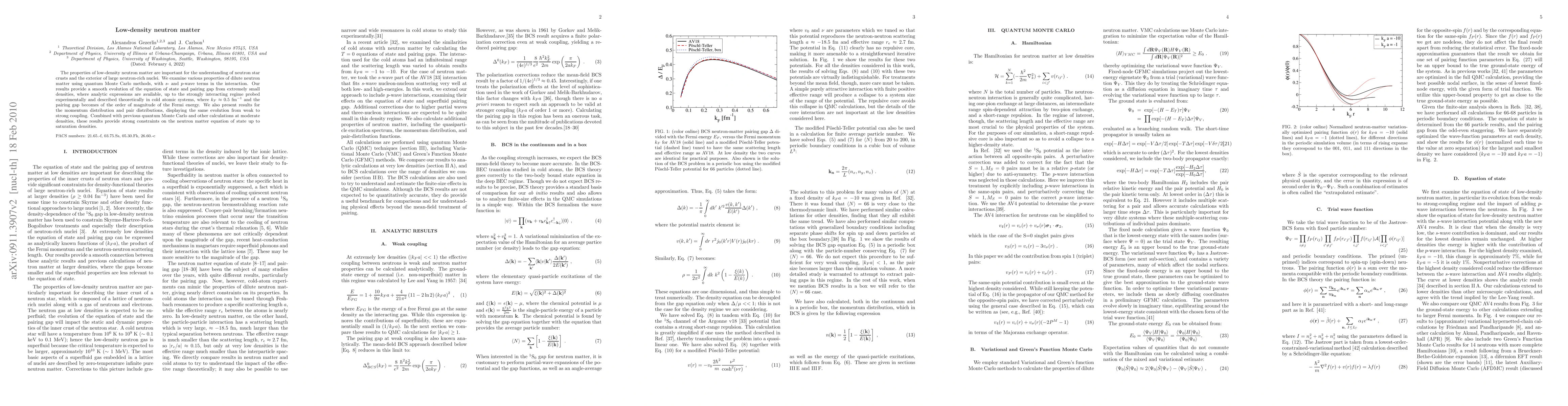 This paper uses quantum Monte Carlo methods to study the properties of low-density neutron matter, providing a smooth transition in the equation of state and pairing gap from dilute to strongly interacting regimes. It also presents results for momentum and pair distributions, offering constraints on the neutron matter equation of state up to saturation densities.
