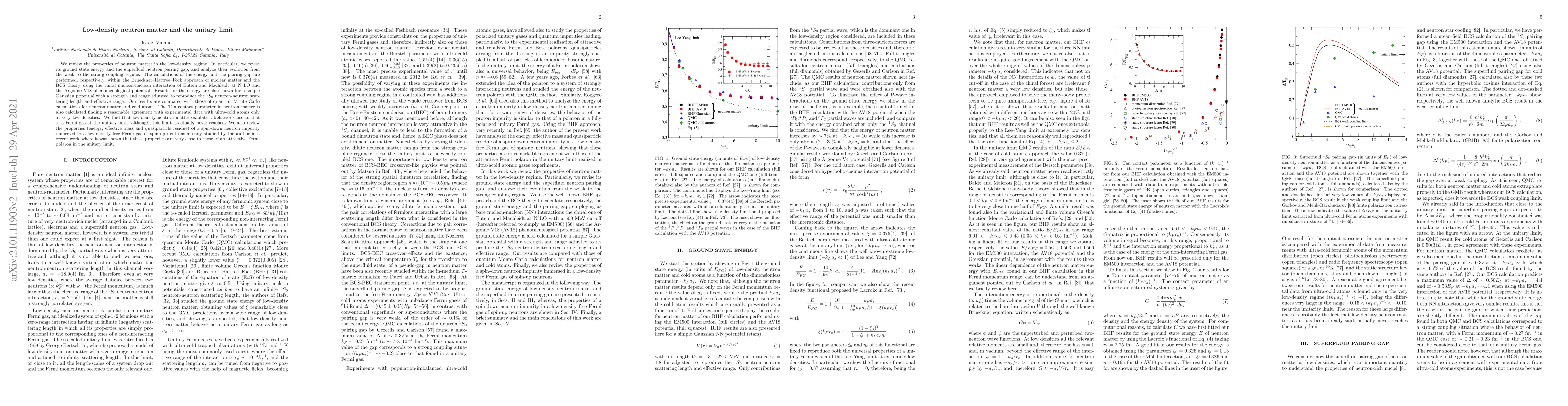 We review the properties of neutron matter in the low-density regime. In particular, we revise its ground state energy and the superfluid neutron pairing gap, and analyze their evolution from the weak to the strong coupling regime. The calculations of the energy and the pairing gap are performed, respectively, within the Brueckner--Hartree--Fock approach of nuclear matter and the BCS theory using the chiral nucleon-nucleon interaction of Entem and Machleidt at N$^3$LO and the Argonne V18 phenomenological potential. Results for the energy are also shown for a simple Gaussian potential with a strength and range adjusted to reproduce the $^1S_0$ neutron-neutron scattering length and effective range. Our results are compared with those of quantum Monte Carlo calculations for neutron matter and cold atoms. The Tan contact parameter in neutron matter is also calculated finding a reasonable agreement with experimental data with ultra-cold atoms only at very low densities. We find that low-density neutron matter exhibits a behavior close to that of a Fermi gas at the unitary limit, although, this limit is actually never reached. We also review the properties (energy, effective mass and quasiparticle residue) of a spin-down neutron impurity immersed in a low-density free Fermi gas of spin-up neutrons already studied by the author in a recent work where it was shown that these properties are very close to those of an attractive Fermi polaron in the unitary limit.