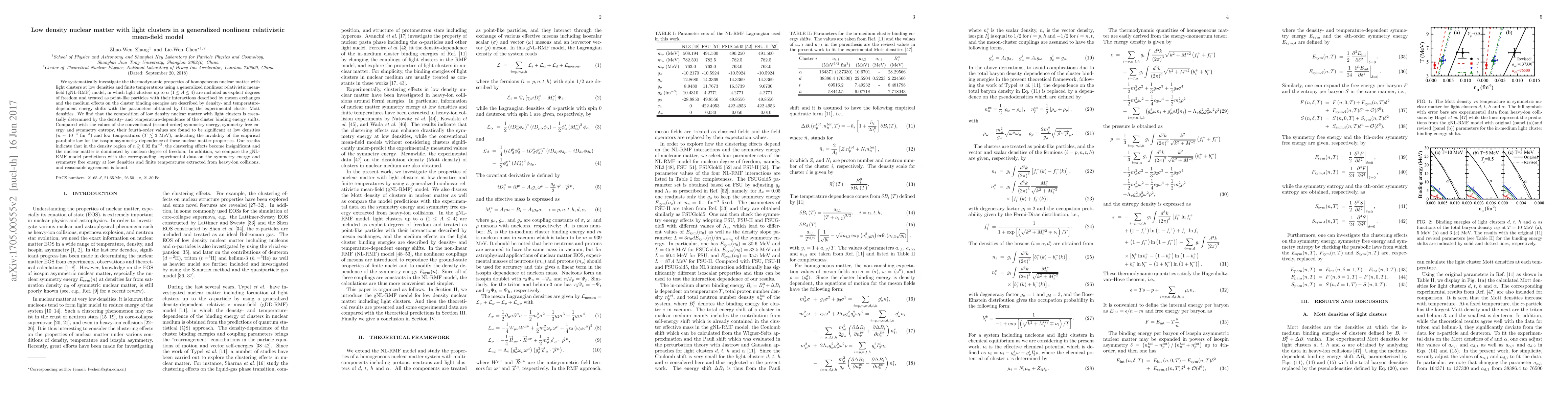 This paper investigates the thermodynamic properties of low density nuclear matter with light clusters using a generalized nonlinear relativistic mean-field model, finding significant fourth-order effects in symmetry energy, free energy, and entropy at low densities. The study concludes that clustering effects become negligible above a certain density, and the model shows reasonable agreement with experimental data.