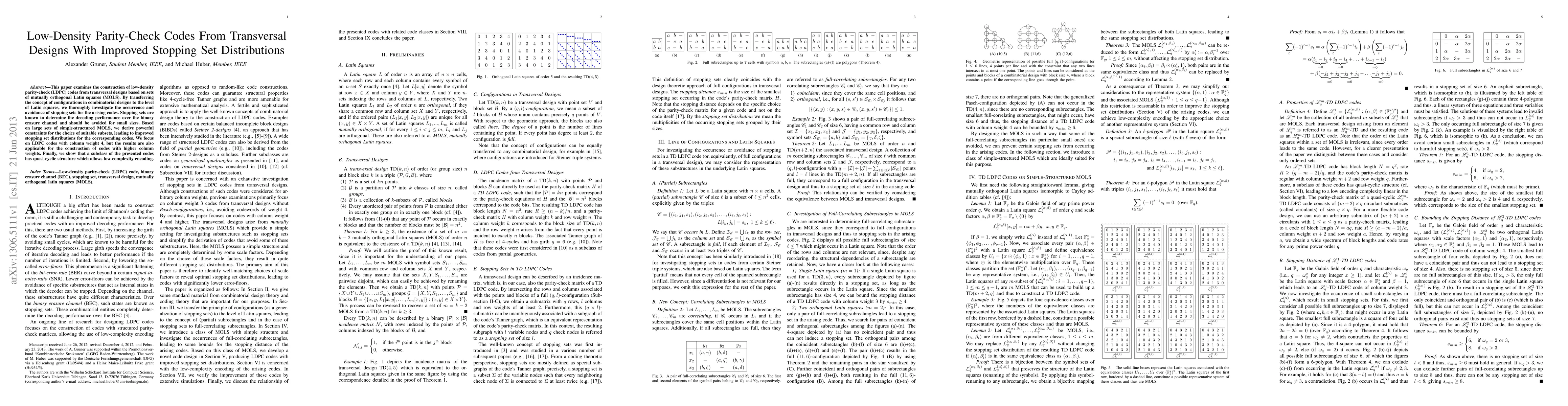 This paper constructs low-density parity-check (LDPC) codes from transversal designs using mutually orthogonal Latin squares (MOLS) to improve stopping set distributions, enhancing decoding performance. The study focuses on column weight 4 LDPC codes but extends to higher weights, and reveals a subclass with quasi-cyclic structure for efficient encoding.