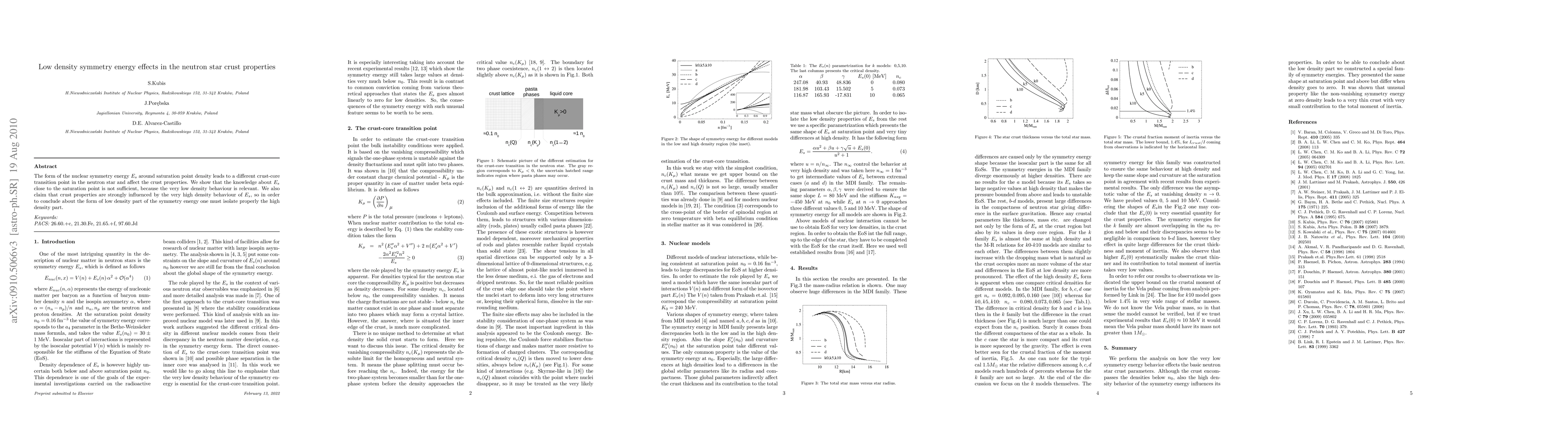 The form of the nuclear symmetry energy $E_s$ around saturation point density leads to a different crust-core transition point in the neutron star and affect the crust properties. We show that the knowledge about $E_s$ close to the saturation point is not sufficient, because the very low density behaviour is relevant. We also claim that crust properties are strongly influenced by the very high density behavior of $E_s$, so in order to conclude about the form of low density part of the symmetry energy one must isolate properly the high density part.