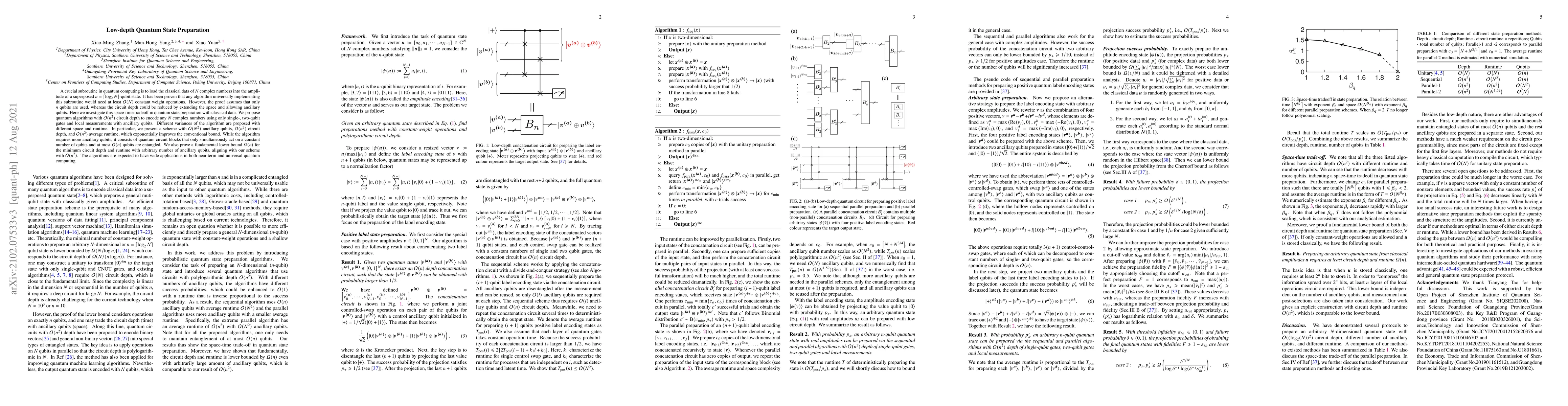 This paper proposes quantum algorithms to prepare quantum states with classical data, achieving $\mathcal O(n^2)$ circuit depth and $\mathcal O(n^2)$ average runtime using ancillary qubits, which significantly improves the conventional $\mathcal O(N)$ bound. The authors also prove a lower bound $\mit\Omega(n)$ for the minimum circuit depth, aligning with their proposed scheme.
