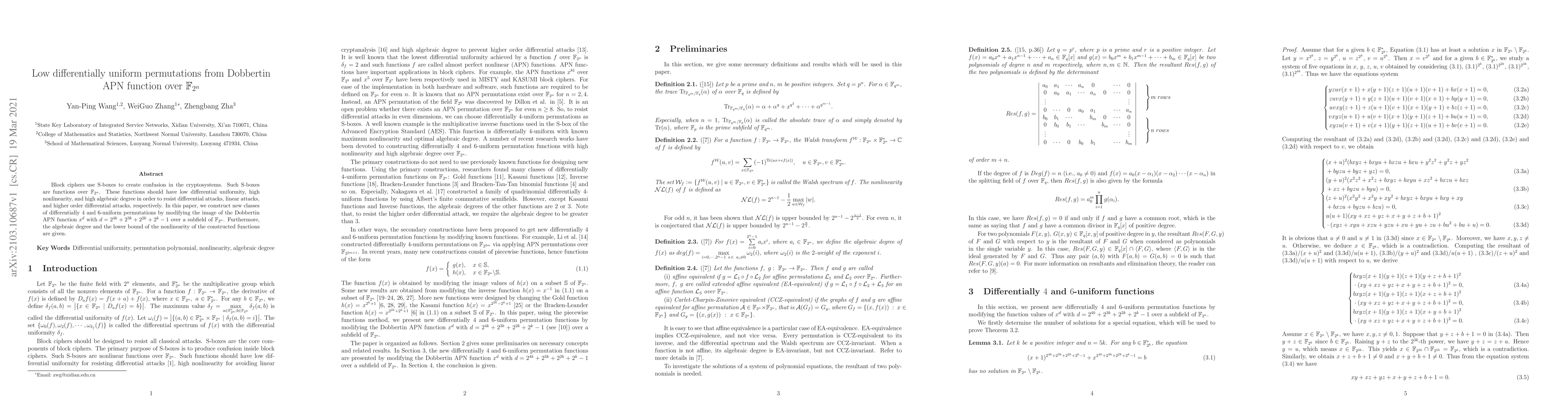 This paper constructs new low differentially uniform permutations by modifying the Dobbertin APN function over $\mathbb{F}_{2^n}$. The proposed permutations exhibit differential uniformity of $4$ and $6$, along with their algebraic degree and nonlinearity bounds.