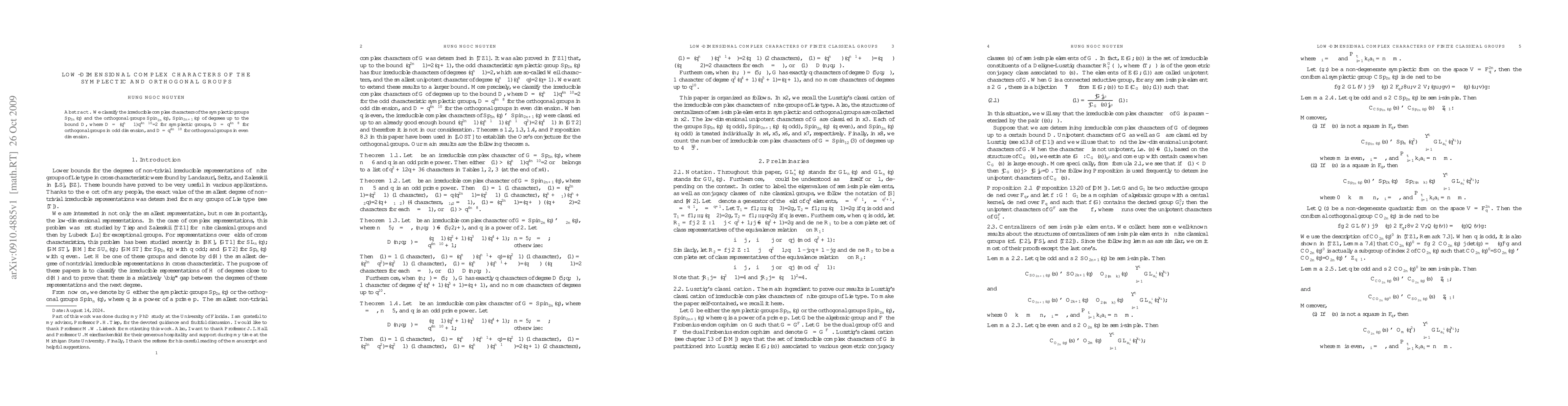 This paper classifies the irreducible complex characters of symplectic groups $Sp_{2n}(q)$ and orthogonal groups $Spin_{2n}^\pm(q)$, $Spin_{2n+1}(q)$ up to a specified degree bound, providing detailed results for each group's character structure.