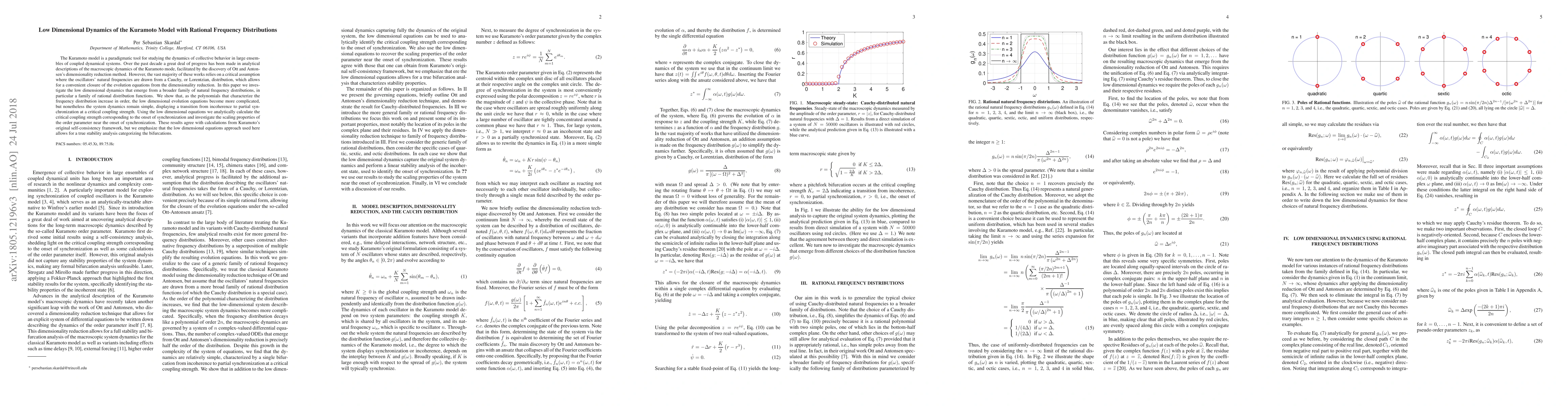 Researchers studied how a complex system of oscillators behaves when their natural frequencies follow specific rational distributions, finding that the system transitions to synchronization at a critical coupling strength.