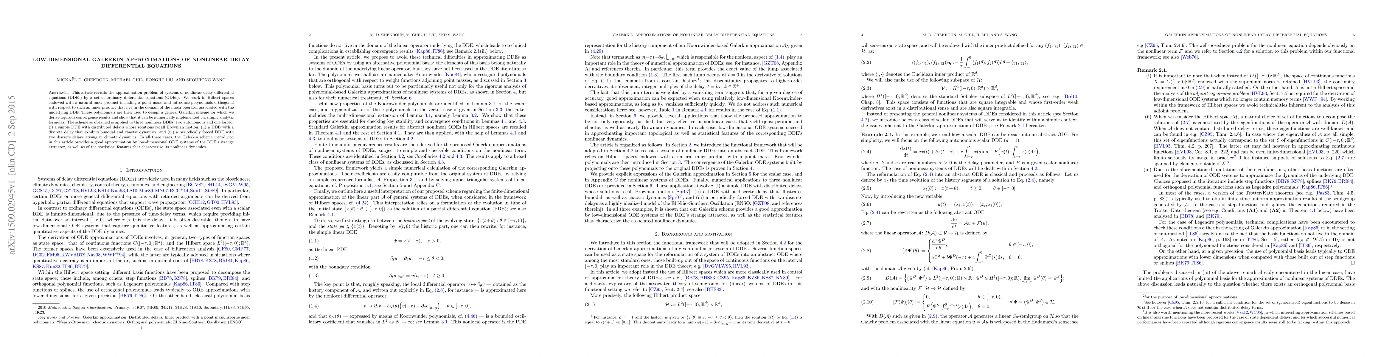 This paper proposes a low-dimensional Galerkin approximation method for nonlinear delay differential equations (DDEs) using orthogonal polynomials in Hilbert spaces, demonstrating rigorous convergence and effective numerical implementation. The method approximates the strange attractors and statistical features of three specific DDEs, including those with distributed and discrete delays, and a periodically forced DDE in climate dynamics.