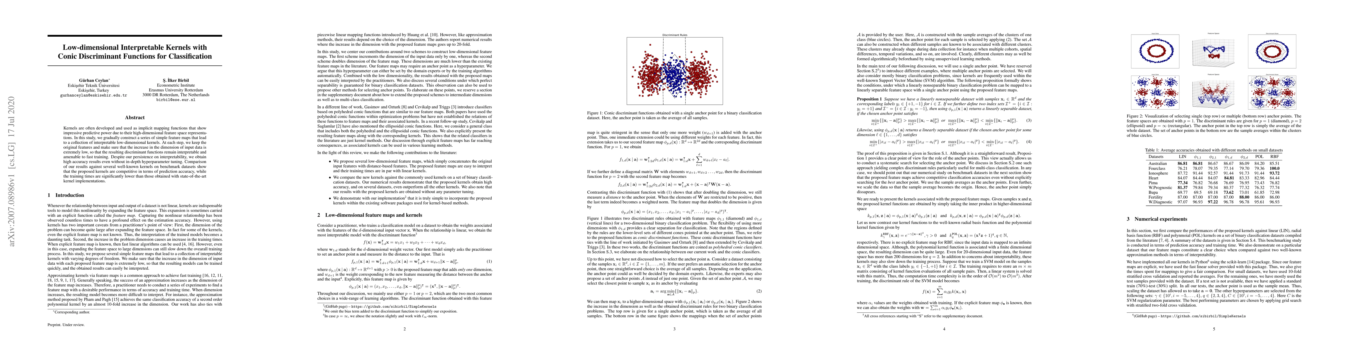 This paper proposes a series of interpretable low-dimensional kernels constructed through simple feature maps, achieving competitive classification accuracy while maintaining fast training times and low-dimensional input data. The proposed kernels demonstrate comparable performance to state-of-the-art kernels but with significantly reduced training times.