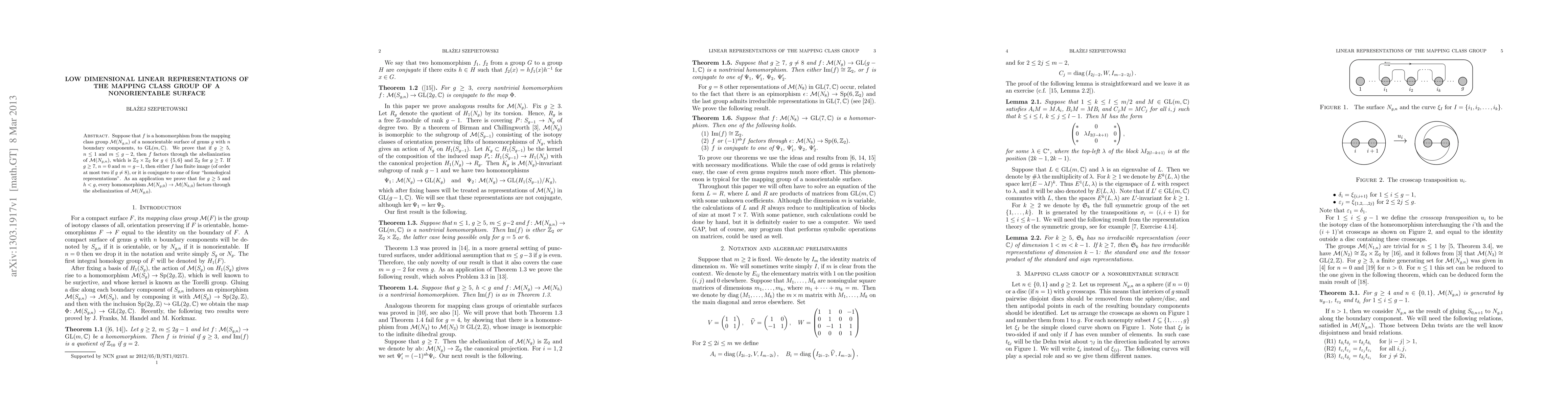 Suppose that $f$ is a homomorphism from the mapping class group