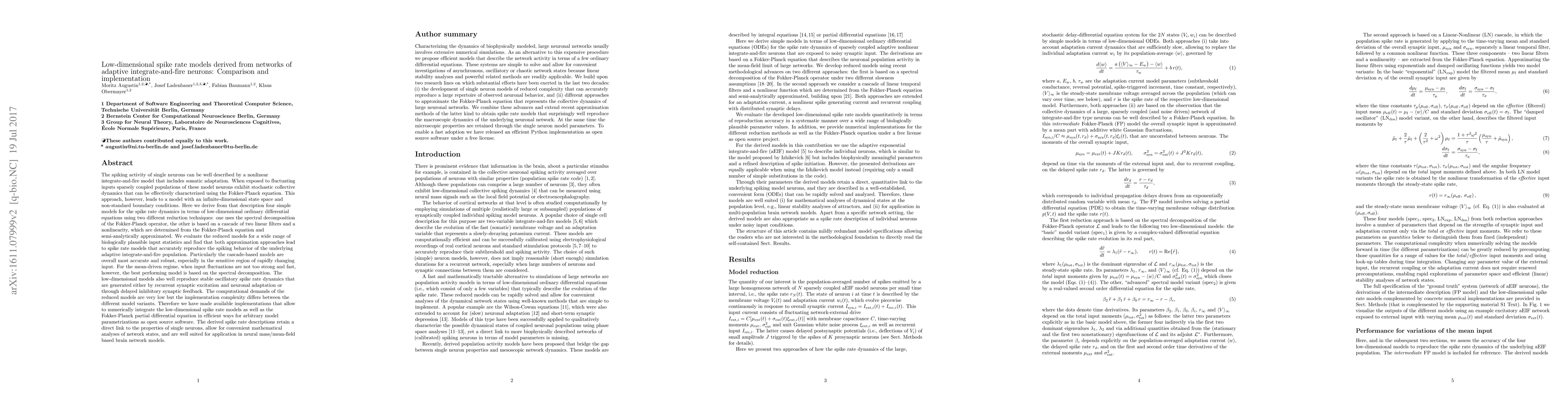 This paper derives low-dimensional spike rate models from networks of adaptive integrate-and-fire neurons using two reduction techniques. Both approaches accurately reproduce the spiking behavior of the underlying neural populations and are implemented as open-source software for efficient numerical integration.