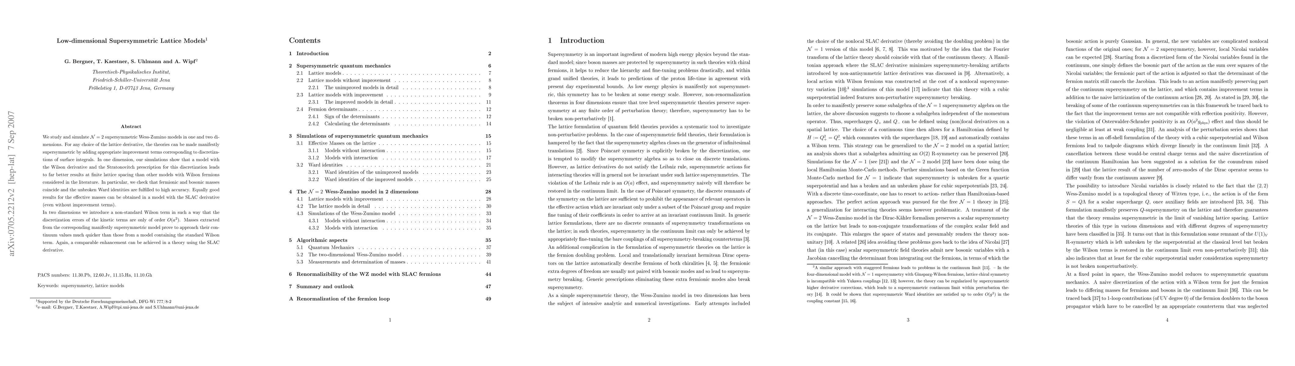 We study and simulate N=2 supersymmetric Wess-Zumino models in one and two dimensions. For any choice of the lattice derivative, the theories can be made manifestly supersymmetric by adding appropriate improvement terms corresponding to discretizations of surface integrals. In one dimension, our simulations show that a model with the Wilson derivative and the Stratonovitch prescription for this discretization leads to far better results at finite lattice spacing than other models with Wilson fermions considered in the literature. In particular, we check that fermionic and bosonic masses coincide and the unbroken Ward identities are fulfilled to high accuracy. Equally good results for the effective masses can be obtained in a model with the SLAC derivative (even without improvement terms). In two dimensions we introduce a non-standard Wilson term in such a way that the discretization errors of the kinetic terms are only of order O(a^2). Masses extracted from the corresponding manifestly supersymmetric model prove to approach their continuum values much quicker than those from a model containing the standard Wilson term. Again, a comparable enhancement can be achieved in a theory using the SLAC derivative.