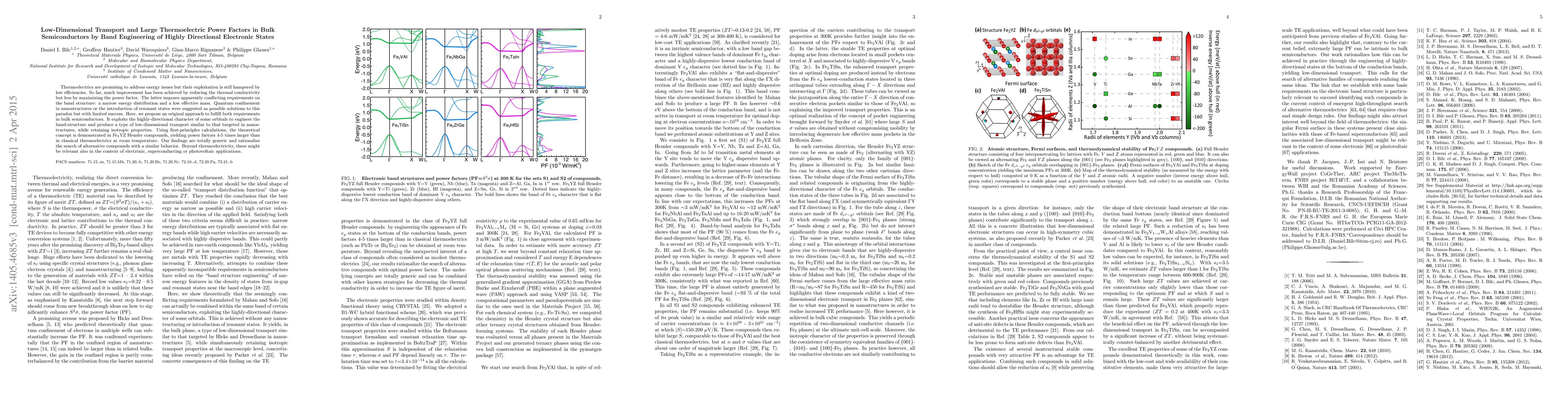 Thermoelectrics are promising to address energy issues but their exploitation is still hampered by low efficiencies. So far, much improvement has been achieved by reducing the thermal conductivity but less by maximizing the power factor. The latter imposes apparently conflicting requirements on the band structure: a narrow energy distribution and a low effective mass. Quantum confinement in nanostructures or the introduction of resonant states were suggested as possible solutions to this paradox but with limited success. Here, we propose an original approach to fulfill both requirements in bulk semiconductors. It exploits the highly-directional character of some orbitals to engineer the band-structure and produce a type of low-dimensional transport similar to that targeted in nanostructures, while retaining isotropic properties. Using first-principles calculations, the theoretical concept is demonstrated in Fe$_2$YZ Heusler compounds, yielding power factors 4-5 times larger than in classical thermoelectrics at room temperature. Our findings are totally generic and rationalize the search of alternative compounds with a similar behavior. Beyond thermoelectricity, these might be relevant also in the context of electronic, superconducting or photovoltaic applications.