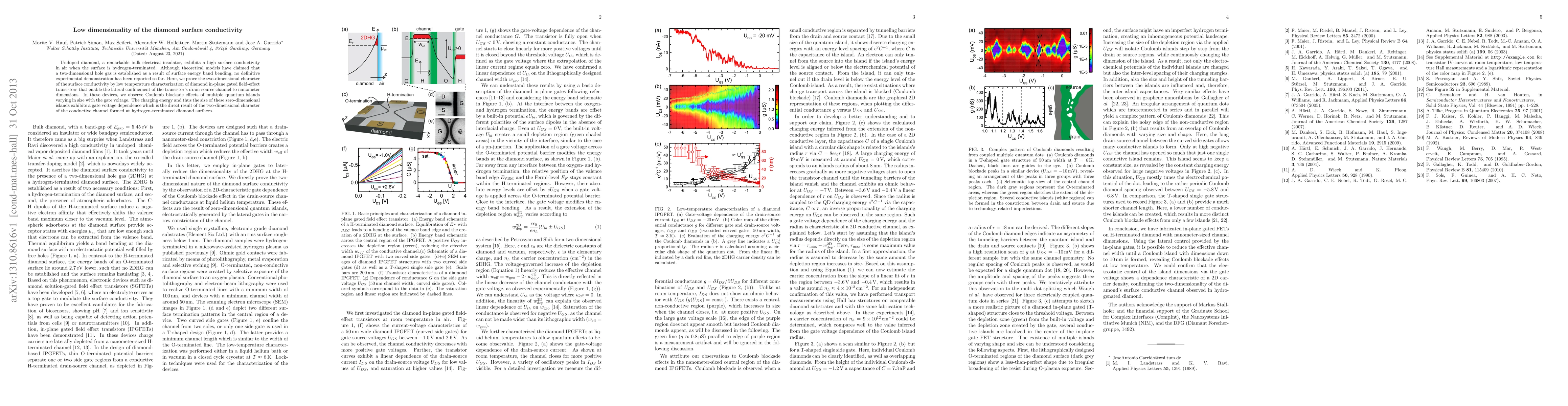 Researchers created diamond field-effect transistors with nanometer-scale channels, showing a two-dimensional hole gas at hydrogen-terminated surfaces which affects the size of quantum islands.