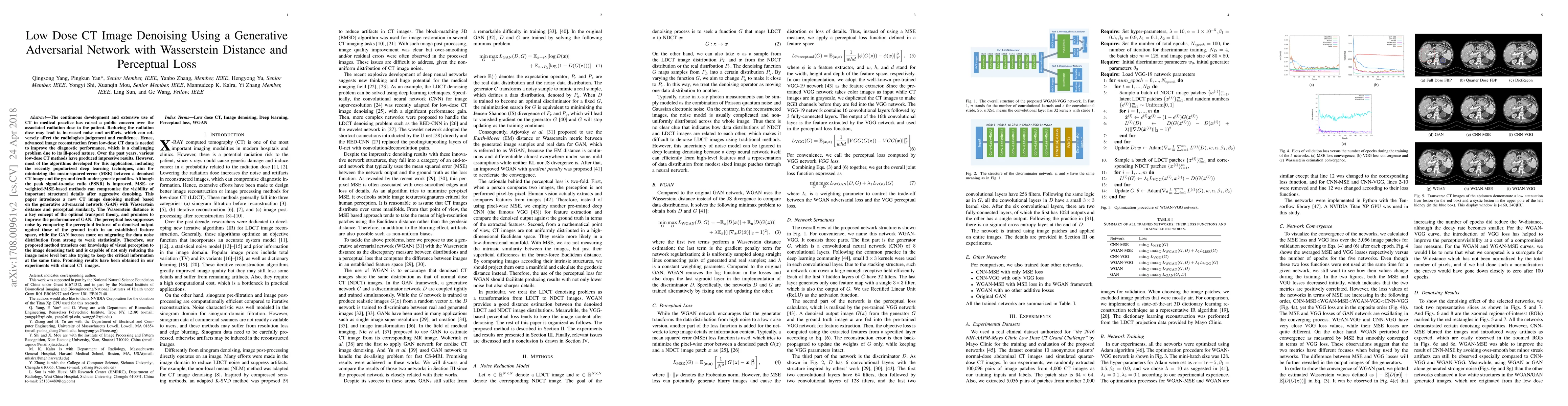 This paper presents a novel CT image denoising method using a GAN with Wasserstein distance and perceptual loss, aiming to reduce noise while preserving critical information. The method leverages perceptual features to enhance visual quality, achieving promising results in clinical CT image experiments.