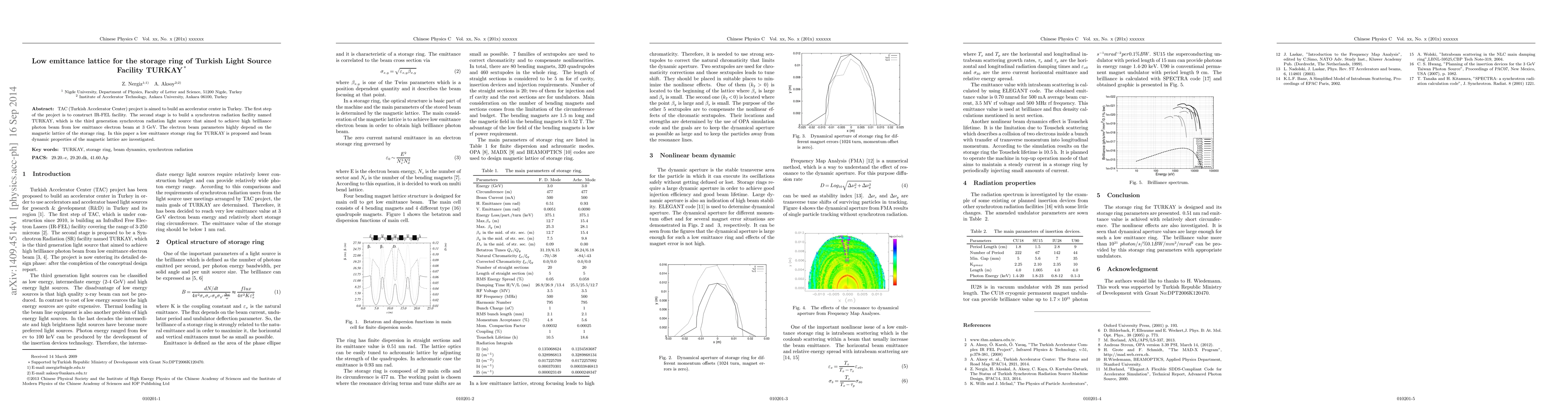 Turkish Accelerator Center) project is aimed to build an accelerator center in Turkey. The first step of the project is to construct IR-FEL facility. The second stage is to build a synchrotron radiation facility named TURKAY, which is the third generation synchrotron radiation light source that aimed to achieve high brilliance photon beam from low emittance electron beam at 3 GeV. The electron beam parameters highly depend on the magnetic lattice of the storage ring. In this paper a low emittance storage ring for TURKAY is proposed and beam dynamic properties of the magnetic lattice are investigated.