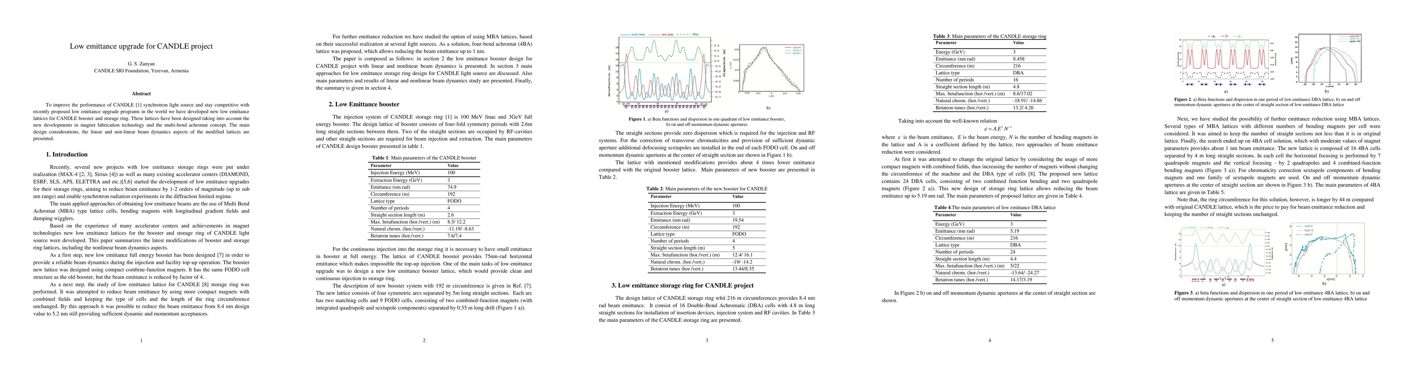 To improve the performance of CANDLE synchrotron light source and stay competitive with recently proposed low emittance upgrade programs in the world we have developed new low emittance lattices for CANDLE booster and storage ring. These lattices have been designed taking into account the new developments in magnet fabrication technology and the multi-bend achromat concept. The main design considerations, the linear and non-linear beam dynamics aspects of the modified lattices are presented.