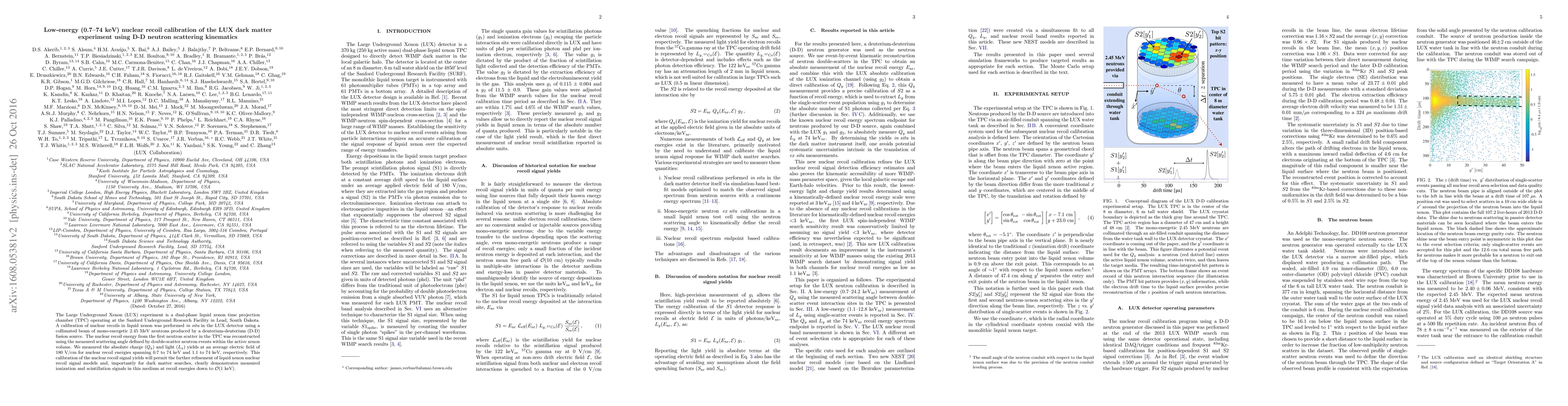 The LUX experiment conducted an in situ calibration of nuclear recoils in liquid xenon using D-D neutron scattering, measuring charge and light yields for recoil energies from 0.7 to 74 keV. This calibration refines nuclear recoil signal models and provides crucial data for dark matter searches at low recoil energies.