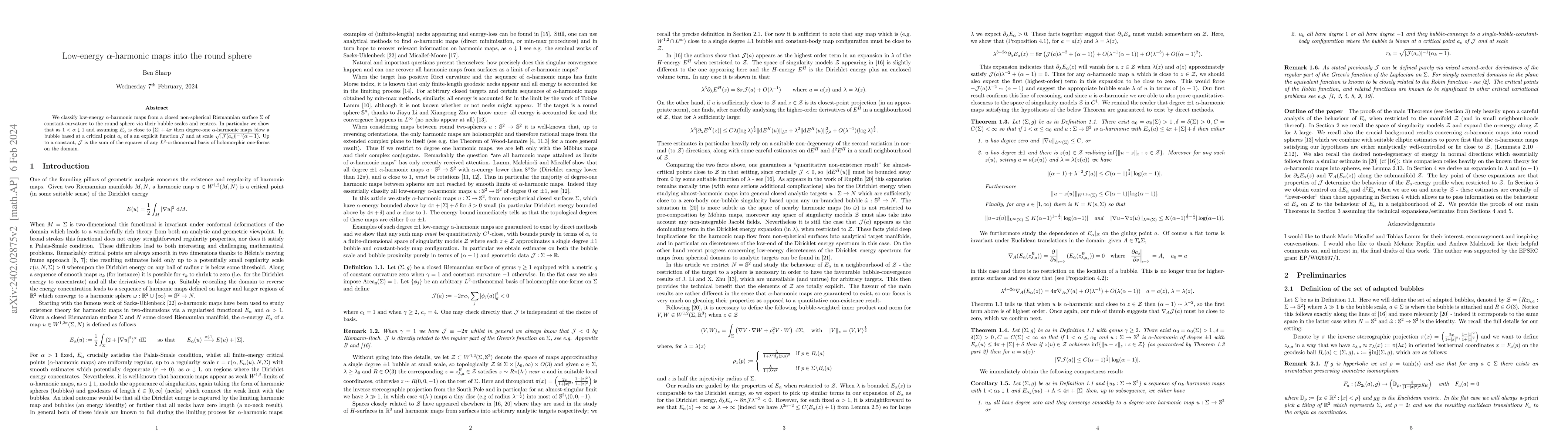 We classify low-energy $\alpha$-harmonic maps from a closed non-spherical Riemannian surface $\Sigma$ of constant curvature to the round sphere via their bubble scales and centres. In particular we show that as $1<\alpha\downarrow 1$ and assuming $E_\alpha$ is close to $| \Sigma|+4\pi$ then degree-one $\alpha$-harmonic maps blow a bubble based at a critical point $a_c$ of a an explicit function $\mathcal{J}$ and at scale $\sqrt{ |\mathcal{J}(a_c)|^{-1}(\alpha-1)}$. Up to a constant, $\mathcal{J}$ is the sum of the squares of any $L^2$-orthonormal basis of holomorphic one-forms on the domain.