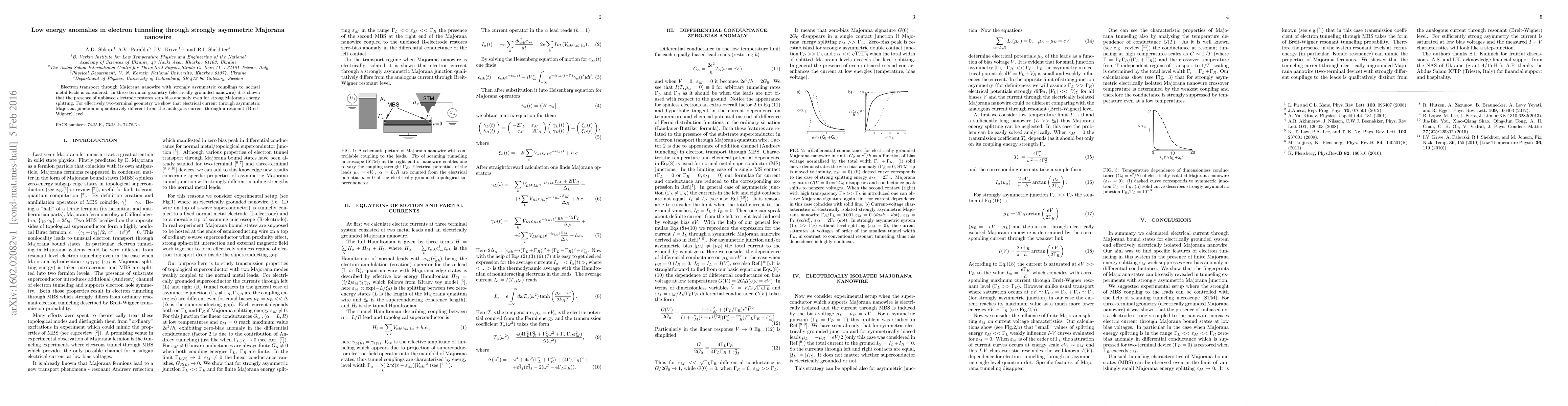 Electron transport through Majorana nanowire with strongly asymmetric couplings to normal metal leads is considered. In three terminal geometry (electrically grounded nanowire) it is shown that the presence of unbiased electrode restores zero-bias anomaly even for strong Majorana energy splitting. For effectively two-terminal geometry we show that electrical current through asymmetric Majorana junction is qualitatively different from the analogous current through a resonant (Breit-Wigner) level.