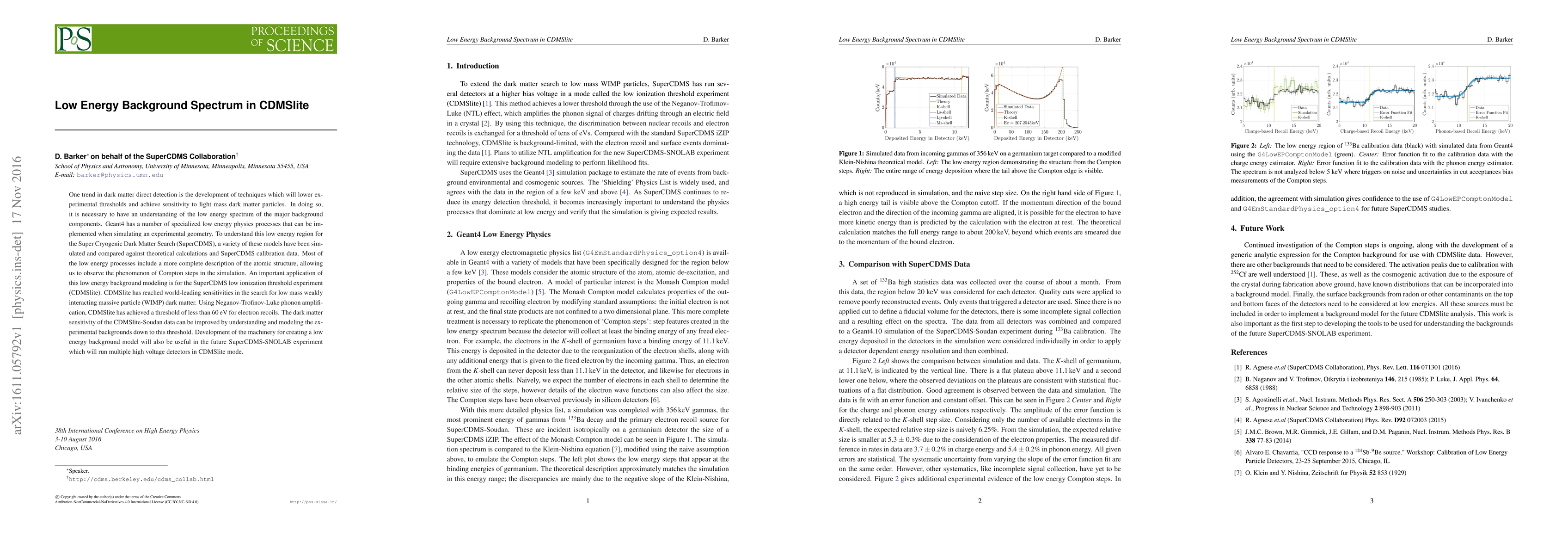 Researchers used Geant4 to simulate low energy backgrounds in a dark matter detector, improving understanding of atomic structure and Compton steps at thresholds below 60 eV. This work aims to enhance the sensitivity of future experiments like SuperCDMS-SNOLAB.