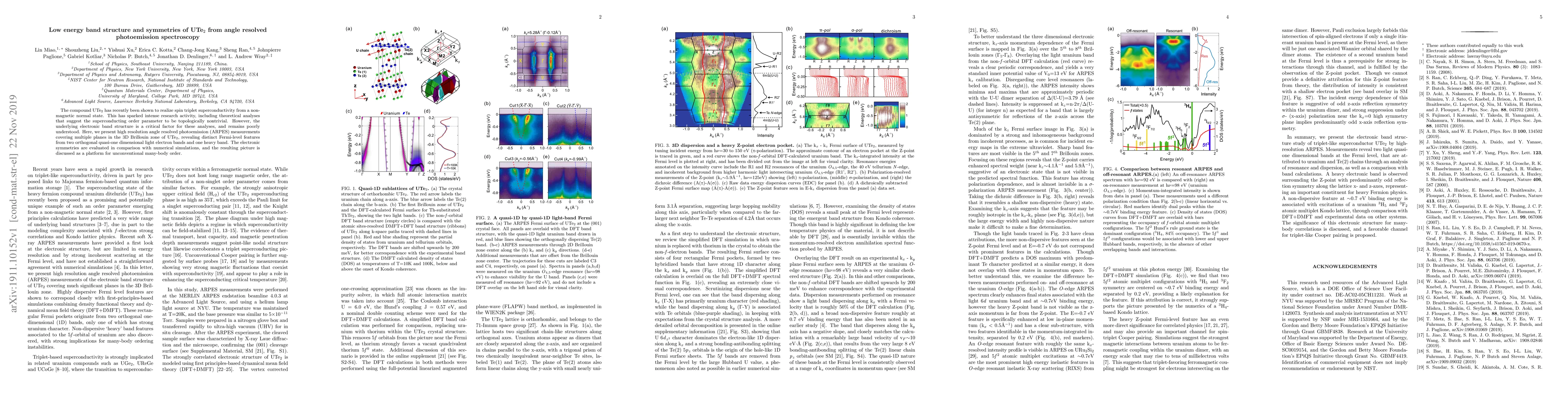 The compound UTe2 has recently been shown to realize spin triplet superconductivity from a non-magnetic normal state. This has sparked intense research activity, including theoretical analyses that suggest the superconducting order parameter to be topologically nontrivial. However, the underlying electronic band structure is a critical factor for these analyses, and remains poorly understood. Here, we present high resolution angle resolved photoemission (ARPES) measurements covering multiple planes in the 3D Brillouin zone of UTe2, revealing distinct Fermi-level features from two orthogonal quasi-one dimensional light electron bands and one heavy band. The electronic symmetries are evaluated in comparison with numerical simulations, and the resulting picture is discussed as a platform for unconventional many-body order.