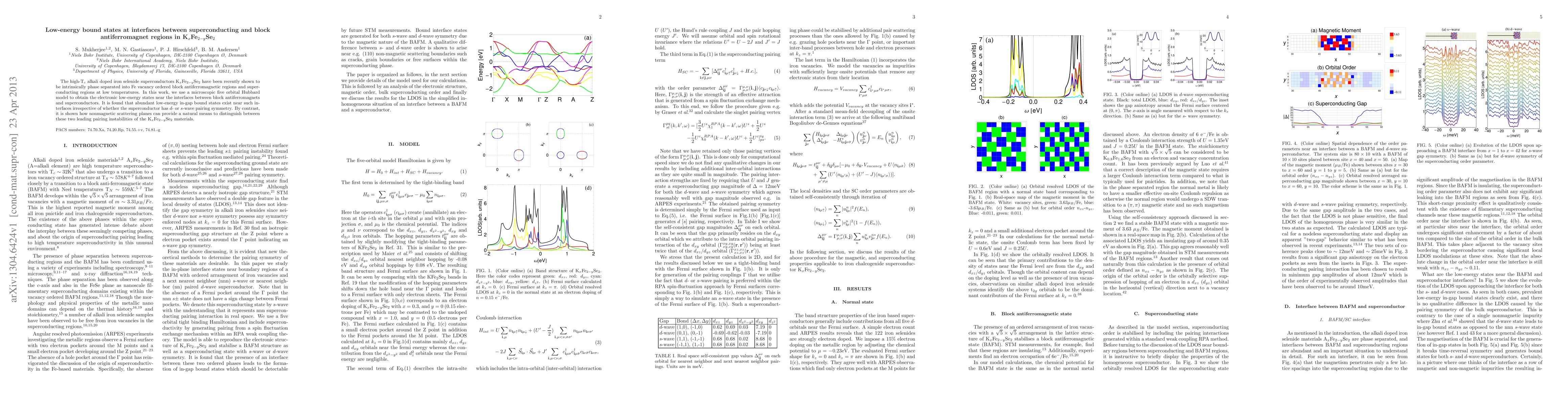 This research investigates low-energy bound states at interfaces between superconducting and block antiferromagnet regions in KxFe{2-y}Se2 using a five orbital Hubbard model, revealing abundant in-gap states regardless of the superconductor's pairing symmetry. The study also differentiates between d- and s-wave pairing via nonmagnetic scattering planes.