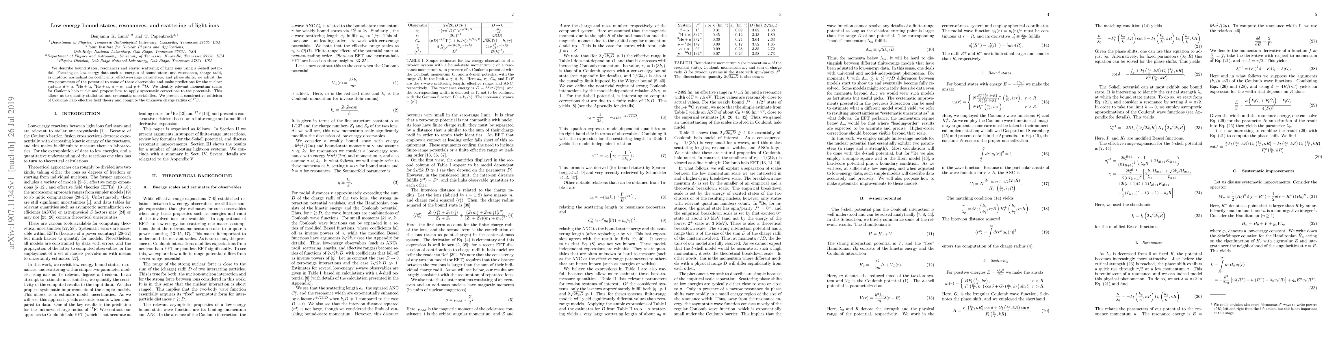 This paper investigates low-energy bound states, resonances, and scattering of light ions using a $\delta$-shell potential, adjusting its parameters to match experimental data and making predictions for nuclear systems like $d+\alpha$. The study also proposes systematic corrections for Coulomb halo nuclei and computes the charge radius of $^{17}$F.