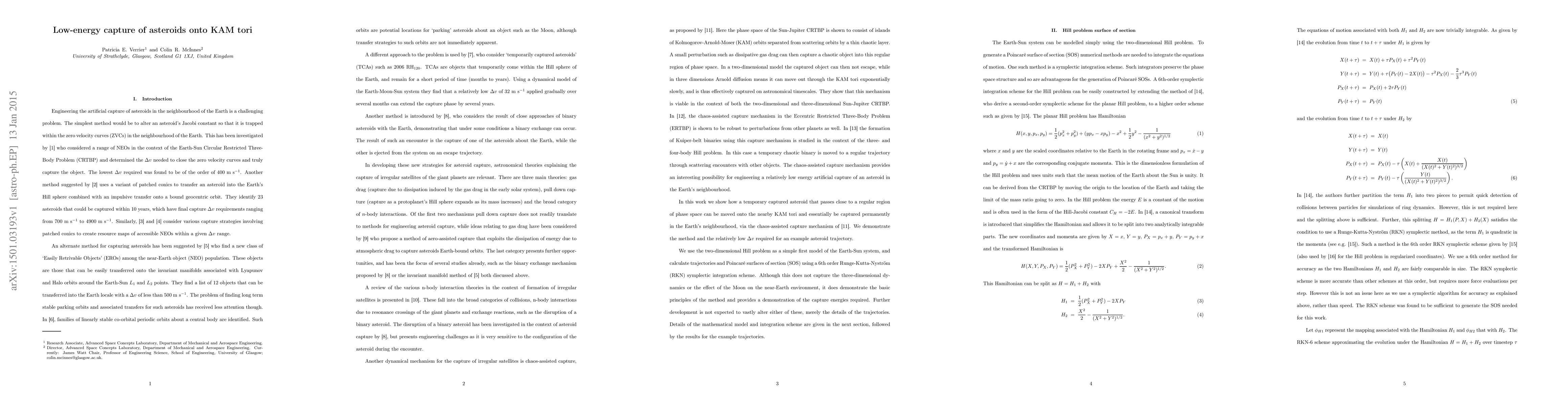 We present a new method for engineering the artificial capture of asteroids. Based on theories of the chaos-assisted capture of natural satellites of the giant planets, we show how an unbound asteroid that passes close to a regular region of phase space can be easily moved onto the nearby KAM tori and essentially permanently captured with the Earth's Hill sphere without closing the zero velocity curves. The method has the advantages of a relatively low delta-v requirement and no need for control strategies. An illustration of the method is given for an example asteroid trajectory, demonstrating that it is a viable strategy for the final capture stage of asteroids in the Earth's neighbourhood.