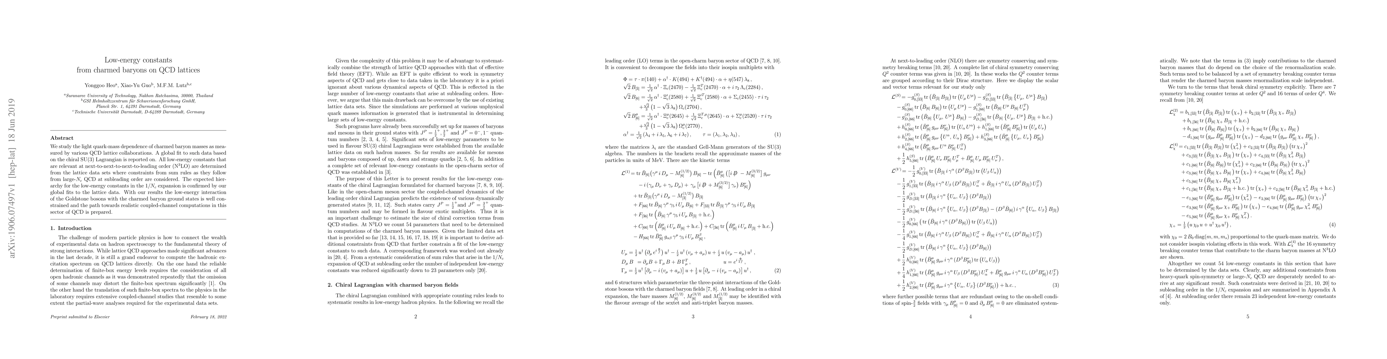 We study the light quark-mass dependence of charmed baryon masses as measured by various QCD lattice collaborations. A global fit to such data based on the chiral SU(3) Lagrangian is reported on. All low-energy constants that are relevant at next-to-next-to-next-to-leading order (N$^3$LO) are determined from the lattice data sets where constraints from sum rules as they follow from large-Nc QCD at subleading order are considered. The expected hierarchy for the low-energy constants in the 1/Nc expansion is confirmed by our global fits to the lattice data. With our results the low-energy interaction of the Goldstone bosons with the charmed baryon ground states is well constrained and the path towards realistic coupled-channel computations in this sector of QCD is prepared.