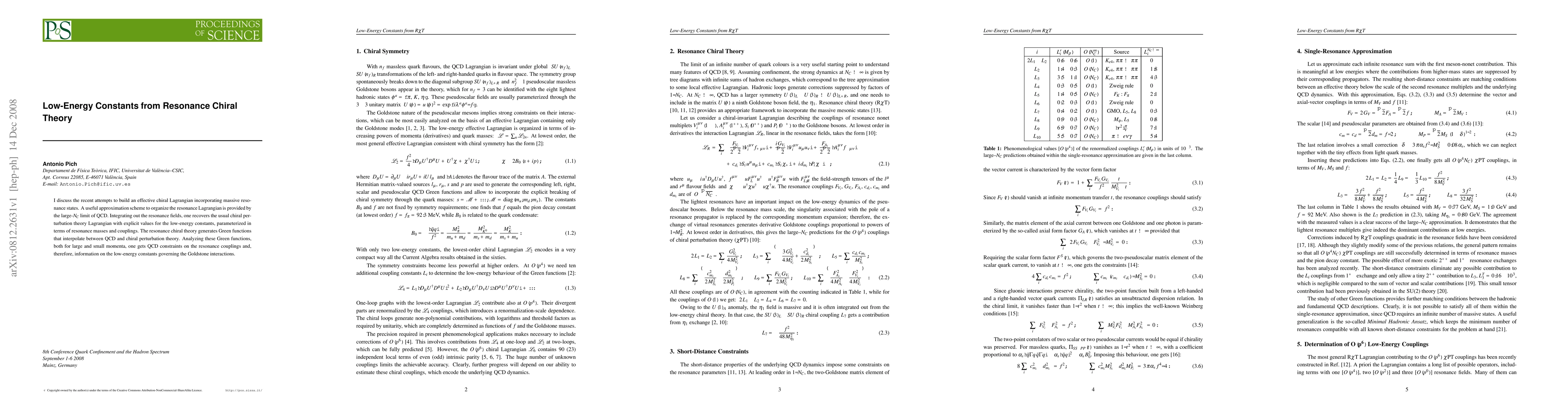 I discuss the recent attempts to build an effective chiral Lagrangian incorporating massive resonance states. A useful approximation scheme to organize the resonance Lagrangian is provided by the large-Nc limit of QCD. Integrating out the resonance fields, one recovers the usual chiral perturbation theory Lagrangian with explicit values for the low-energy constants, parameterized in terms of resonance masses and couplings. The resonance chiral theory generates Green functions that interpolate between QCD and chiral perturbation theory. Analyzing these Green functions, both for large and small momenta, one gets QCD constraints on the resonance couplings and, therefore, information on the low-energy constants governing the Goldstone interactions.