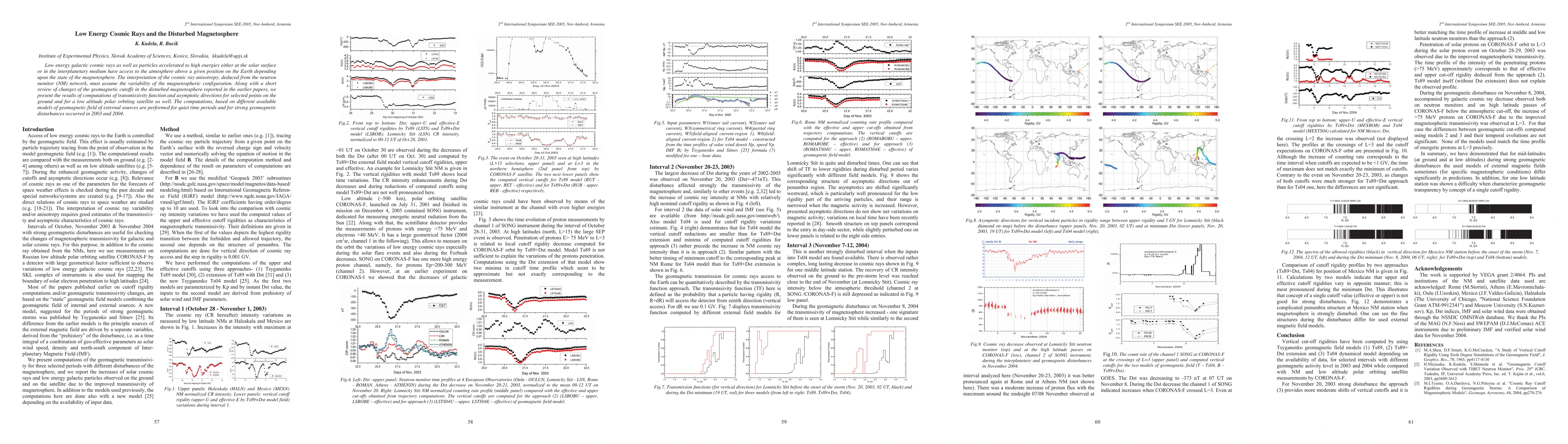 This paper examines the impact of magnetosphere conditions on low energy cosmic rays reaching Earth, using computational models of geomagnetic fields. Results include transmissivity functions and asymptotic directions for ground points and low altitude satellites during quiet and disturbed periods in 2003-2004.