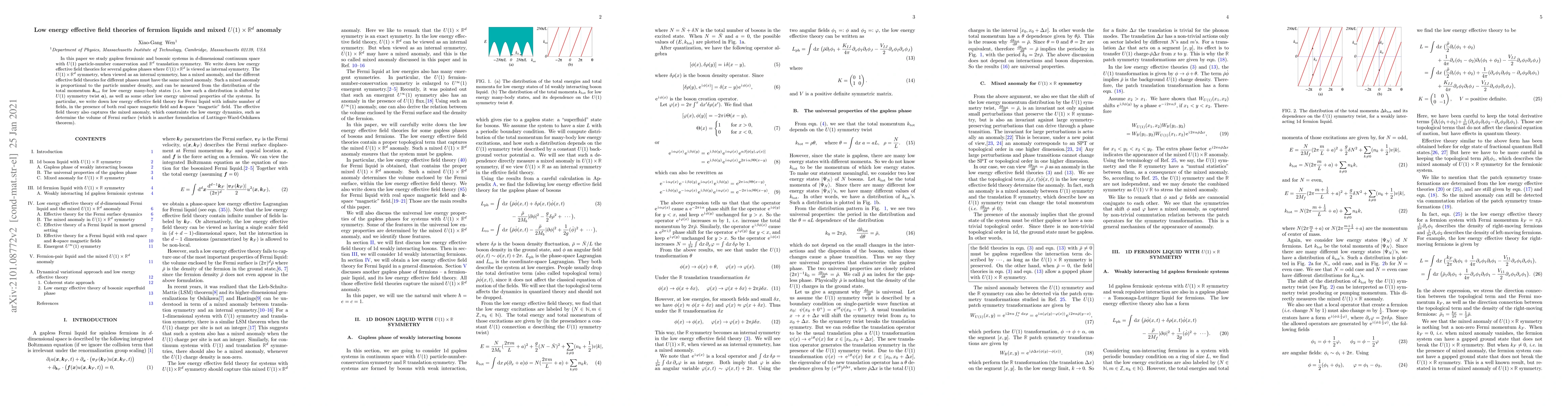 In this paper we study gapless fermionic and bosonic systems in $d$-dimensional continuum space with $U(1)$ particle-number conservation and $\mathbb{R}^d$ translation symmetry. We write down low energy effective field theories for several gapless phases where $U(1)\times \mathbb{R}^d$ is viewed as internal symmetry. The $U(1)\times \mathbb{R}^d$ symmetry, when viewed as an internal symmetry, has a mixed anomaly, and the different effective field theories for different phases must have the same mixed anomaly. Such a mixed anomaly is proportional to the particle number density, and can be measured from the distribution of the total momentum $\boldsymbol{k}_\text{tot}$ for low energy many-body states (\ie how such a distribution is shifted by $U(1)$ symmetry twist $\boldsymbol{a}$), as well as some other low energy universal properties of the systems. In particular, we write down low energy effective field theory for Fermi liquid with infinite number of fields, in the presence of both real space magnetic field and $\boldsymbol{k}$-space "magnetic" field. The effective field theory also captures the mixed anomaly, which constraints the low energy dynamics, such as determine the volume of Fermi surface (which is another formulation of Luttinger-Ward-Oshikawa theorem).
