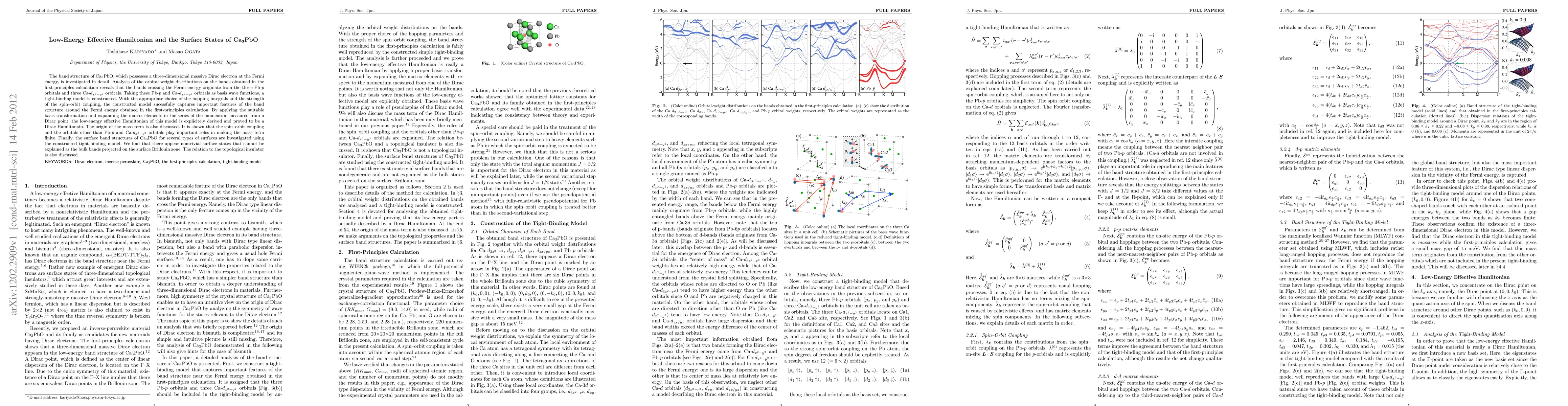 Researchers investigate the band structure of Ca_3PbO and develop a low-energy effective Hamiltonian that captures key features of its surface states, revealing nontrivial surface states not explained by bulk projections.