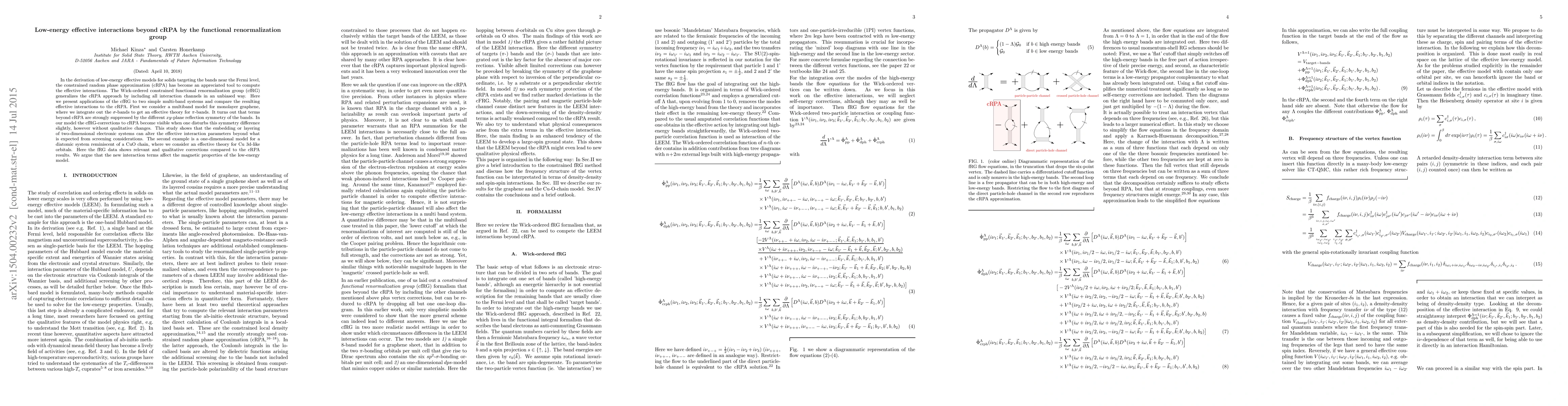 In the derivation of low-energy effective models for solids targeting the bands near the Fermi level, the constrained random phase approximation (cRPA) has become an appreciated tool to compute the effective interactions. The Wick-ordered constrained functional renormalization group (cfRG) generalizes the cRPA approach by including all interaction channels in an unbiased way. Here we present applications of the cfRG to two simple multi-band systems and compare the resulting effective interactions to the cRPA. First we consider a multiband model for monolayer graphene, where we integrate out the $\sigma$-bands to get an effective theory for $\pi$-bands. It turns out that terms beyond cRPA are strongly suppressed by the different $xy$-plane reflection symmetry of the bands. In our model the cfRG-corrections to cRPA become visible when one disturbs this symmetry difference slightly, however without qualitative changes. This study shows that the embedding or layering of two-dimensional electronic systems can alter the effective interaction parameters beyond what is expected from screening considerations. The second example is a one-dimensional model for a diatomic system reminiscent of a CuO chain, where we consider an effective theory for Cu 3d-like orbitals. Here the fRG data shows relevant and qualitative corrections compared to the cRPA results. We argue that the new interaction terms affect the magnetic properties of the low-energy model.