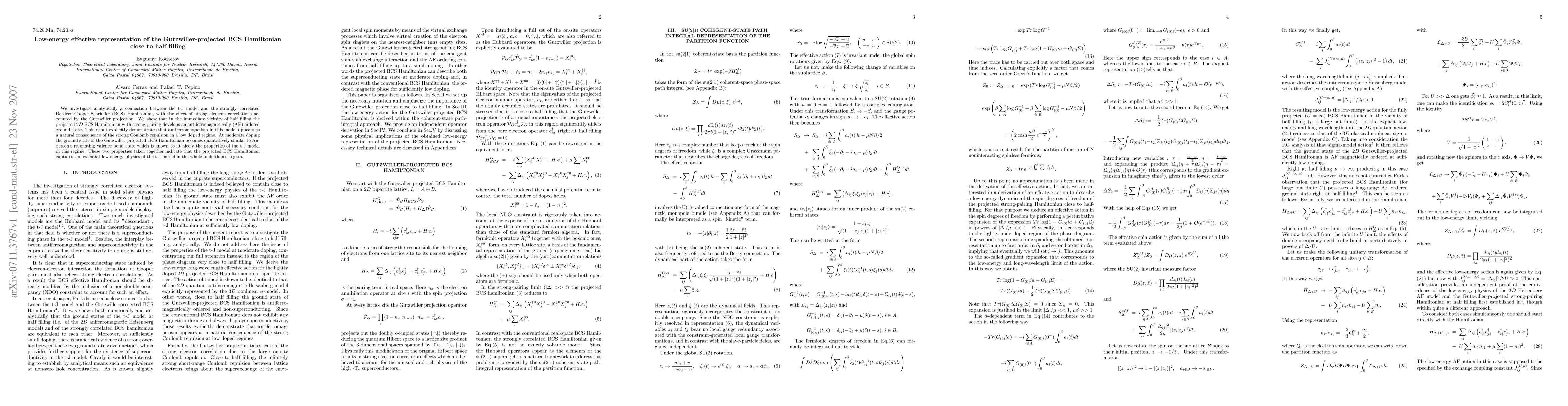 This paper analytically connects the t-J model to the strongly correlated BCS Hamiltonian with strong electron correlations via the Gutzwiller projection, showing that near half filling, the projected BCS Hamiltonian exhibits an antiferromagnetically ordered ground state due to strong Coulomb repulsion. At moderate doping, it resembles Anderson's resonating valence bond state, indicating the projected BCS Hamiltonian captures the essential low-energy physics of the t-J model in the underdoped region.