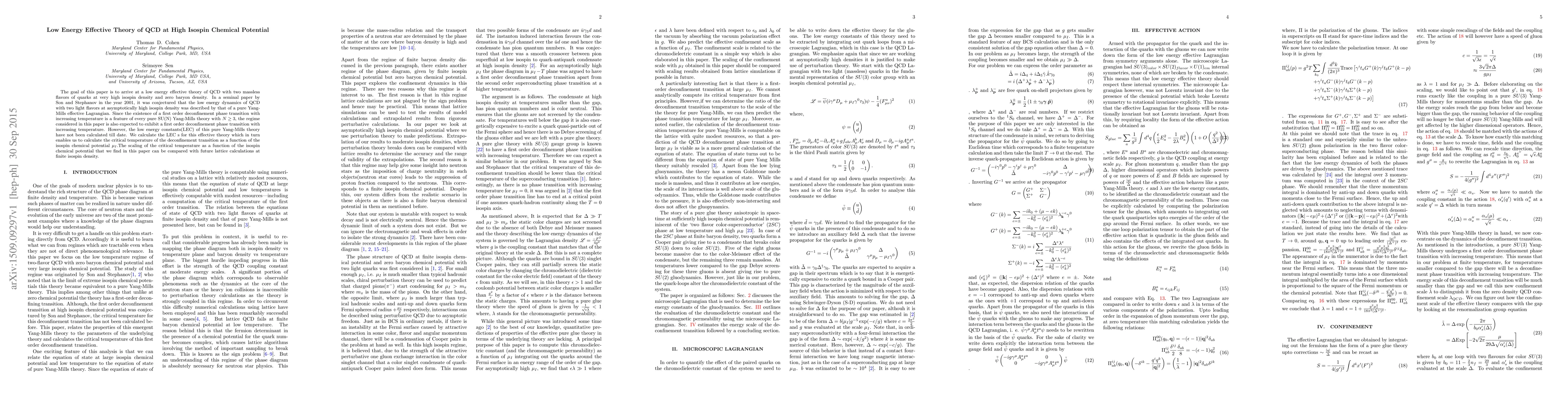 This paper develops a low energy effective theory for QCD with two massless quarks at high isospin density and zero baryon density, confirming the conjecture by Son and Stephanov that it behaves like a pure Yang-Mills theory. It calculates the low energy constants to determine the critical temperature for the deconfinement phase transition as a function of the isospin chemical potential.