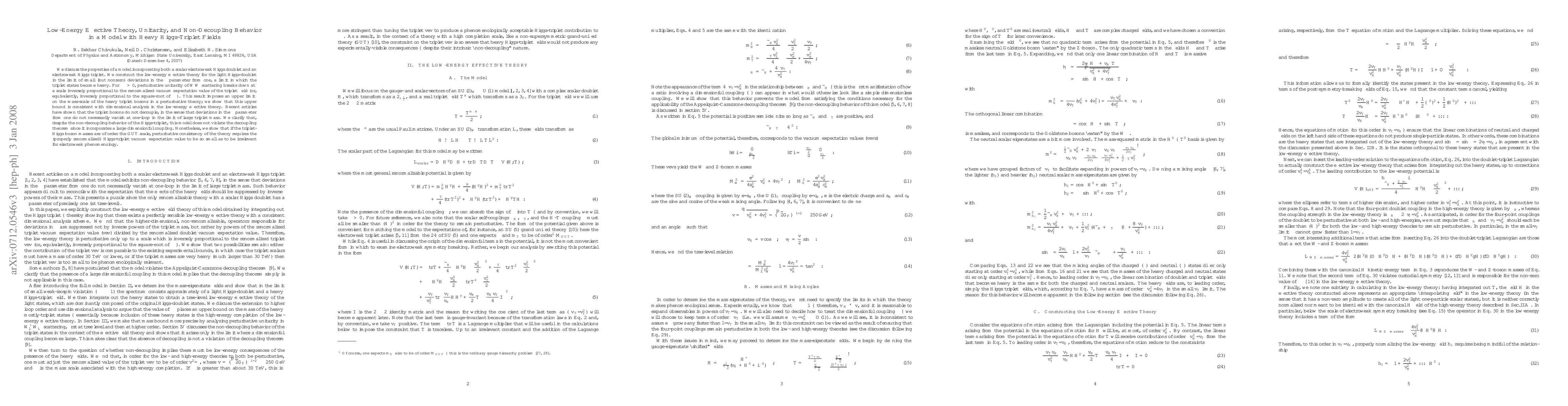 We discuss the properties of a model incorporating both a scalar electroweak Higgs doublet and an electroweak Higgs triplet. We construct the low-energy effective theory for the light Higgs-doublet in the limit of small (but nonzero) deviations in the rho parameter from one, a limit in which the triplet states become heavy. For small deviations in the rho parameter from one, perturbative unitarity of WW scattering breaks down at a scale inversely proportional to the renormalized vacuum expectation value of the triplet field (or, equivalently, inversely proportional to the square-root of the deviation of the rho parameter from one). This result imposes an upper limit on the mass-scale of the heavy triplet bosons in a perturbative theory; we show that this upper bound is consistent with dimensional analysis in the low-energy effective theory. Recent articles have shown that the triplet bosons do not decouple, in the sense that deviations in the rho parameter from one do not necessarily vanish at one-loop in the limit of large triplet mass. We clarify that, despite the non-decoupling behavior of the Higgs-triplet, this model does not violate the decoupling theorem since it incorporates a large dimensionful coupling. Nonetheless, we show that if the triplet-Higgs boson masses are of order the GUT scale, perturbative consistency of the theory requires the (properly renormalized) Higgs-triplet vacuum expectation value to be so small as to be irrelevant for electroweak phenomenology.